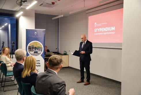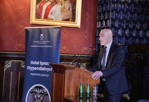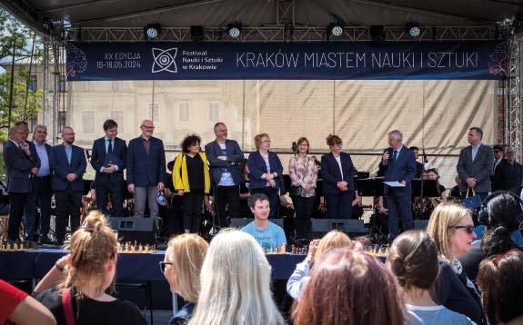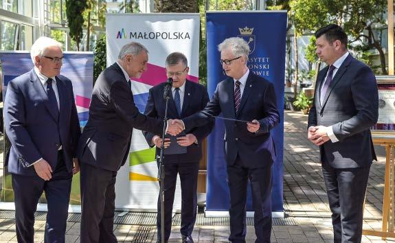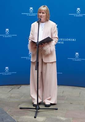 rialnego dziedzictwa kulturowego przemarszu orszaku profesorów Uniwersytetu Jagiellońskiego, od dziesięcioleci poprzedzającego ogólnouczelnianą inaugurację roku akademickiego. Mam nadzieję, że w najbliższym czasie Senat Uniwersytetu Jagiellońskiego przyjmie dokument, który opisuje dokładnie tradycje i ceremoniały uniwersyteckie. Będzie to nasz wyraz dbałości o to, co stanowi o naszej wyjątkowości, a także świadczy o ciągłości historii najstarszej polskiej uczelni. Od ostatnich obchodów Święta Uniwersytetu Jagiellońskiego wiele się na naszej Uczelni zmieniło. Jej goście znów mogą się zatrzymać w oddanym niedawno do użytku – po generalnym remoncie i modernizacji – Domu Gościnnym przy ul. Floriańskiej 49. Trwa rozbudowa Kampusu Medycznego UJ CM w Prokocimiu. Efektem prowadzonych działań inwestycyjnych będzie otwarcie dwóch nowoczesnych budynków przeznaczonych na cele dydaktyczne i badawczo-rozwojowe. Przed końcem 2023 roku otrzymaliśmy znaczące środki z Ministerstwa Zdrowia na rozbudowę Uniwersyteckiego Szpitala Dziecięcego w Krakowie. Doniosłym wydarzeniem było otwarcie nowej linii badawczej POLYX w Narodowym Centrum Promieniowania Synchrotronowego SOLARIS. Długo oczekiwaną inwestycję udało się zrealizować za sprawą bliskiej współpracy Uniwersytetu Jagiellońskiego, Akademii Górniczo-Hutniczej oraz Instytutu Fizyki Jądrowej PAN. Zakończyła się rozbudowa Małopolskiego Centrum Biotechnologii – które znacząco zwiększy potencjał badawczy tej jednostki. 24 maja 2024 ta nowa część MCB zostanie otwarta.
