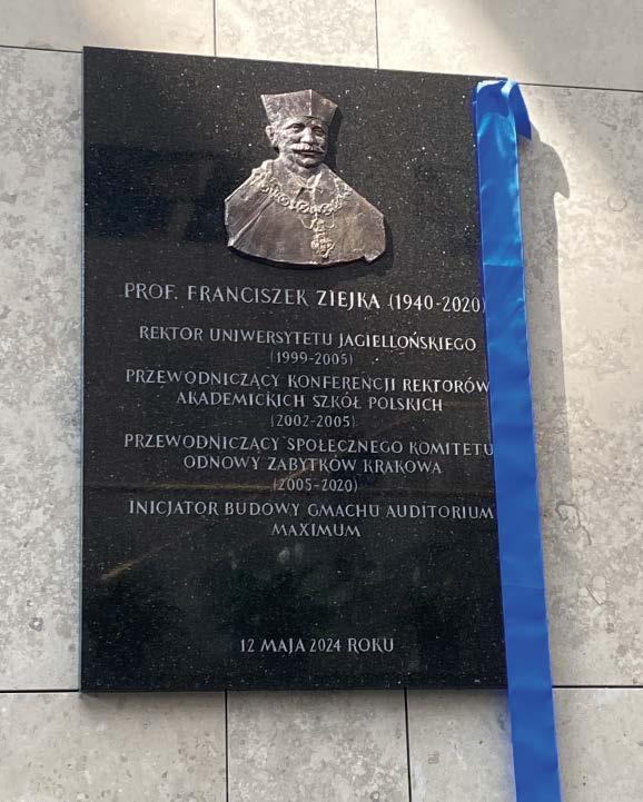 dwigi. Następnie w Auditorium Maximum odsłonięto tablicę upamiętniającą jednego z najbardziej zasłużonych rektorów we współczesnych dziejach Uniwersytetu Jagiellońskiego – prof. Franciszka Ziejkę, który tę funkcję sprawował przez dwie trzyletnie kadencje: od 1 września 1999 do 31 sierpnia 2005. Był człowiekiem całkowicie oddanym Uniwersytetowi, niezwykle pracowitym, aktywnym na różnych polach, pełnym pasji, pomysłów i radości tworzenia. To właśnie w czasie jego kadencji wprowadzony został zwyczaj składania kwiatów w katedrze wawelskiej.