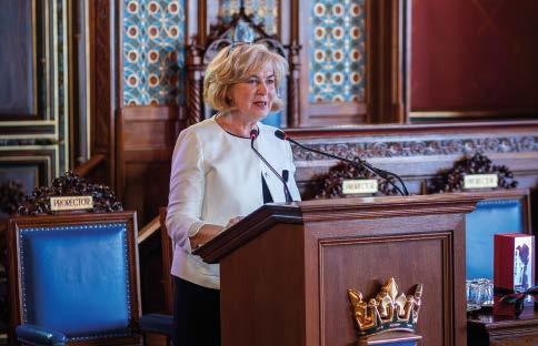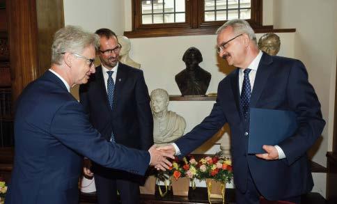 Misją Uniwersytetu Jagiellońskiego jest czerpanie z bogactwa wielowiekowej tradycji i zachowywanie dziedzictwa pokoleń, a jednocześnie wytyczanie nowych kierunków rozwoju myśli poprzez najwyższej jakości badania i nauczanie, a także budowanie trwałych relacji ze społeczeństwem oraz kształtowanie otwartości na nieznane, wrażliwości humanistycznej i odpowiedzialności za działanie. Dewiza „Plus ratio quam vis” pięknie wpisuje się w tę misję – mówił rektor UJ prof. Jacek Popiel w auli Collegium Novum podczas specjalnego posiedzenia Senatu UJ