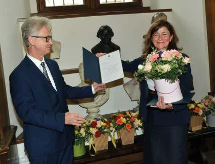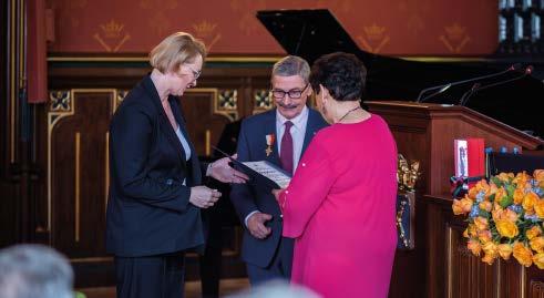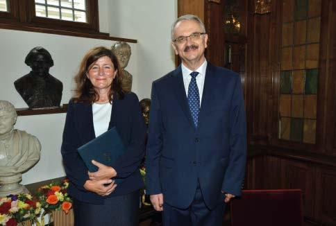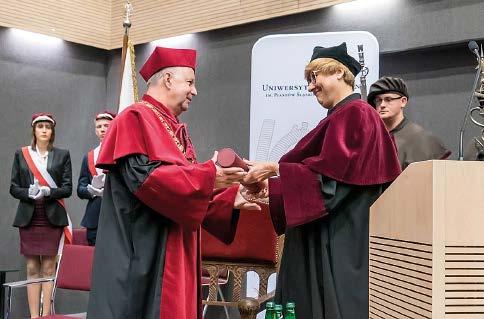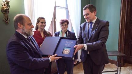 Rektor J. Popiel oraz prorektor P. Jedynak uczestniczyli w zorganizowanej w auli Collegium Novum uroczystości wręczenia srebrnego medalu Plus Ratio Quam Vis prof. Halinie Kurek.