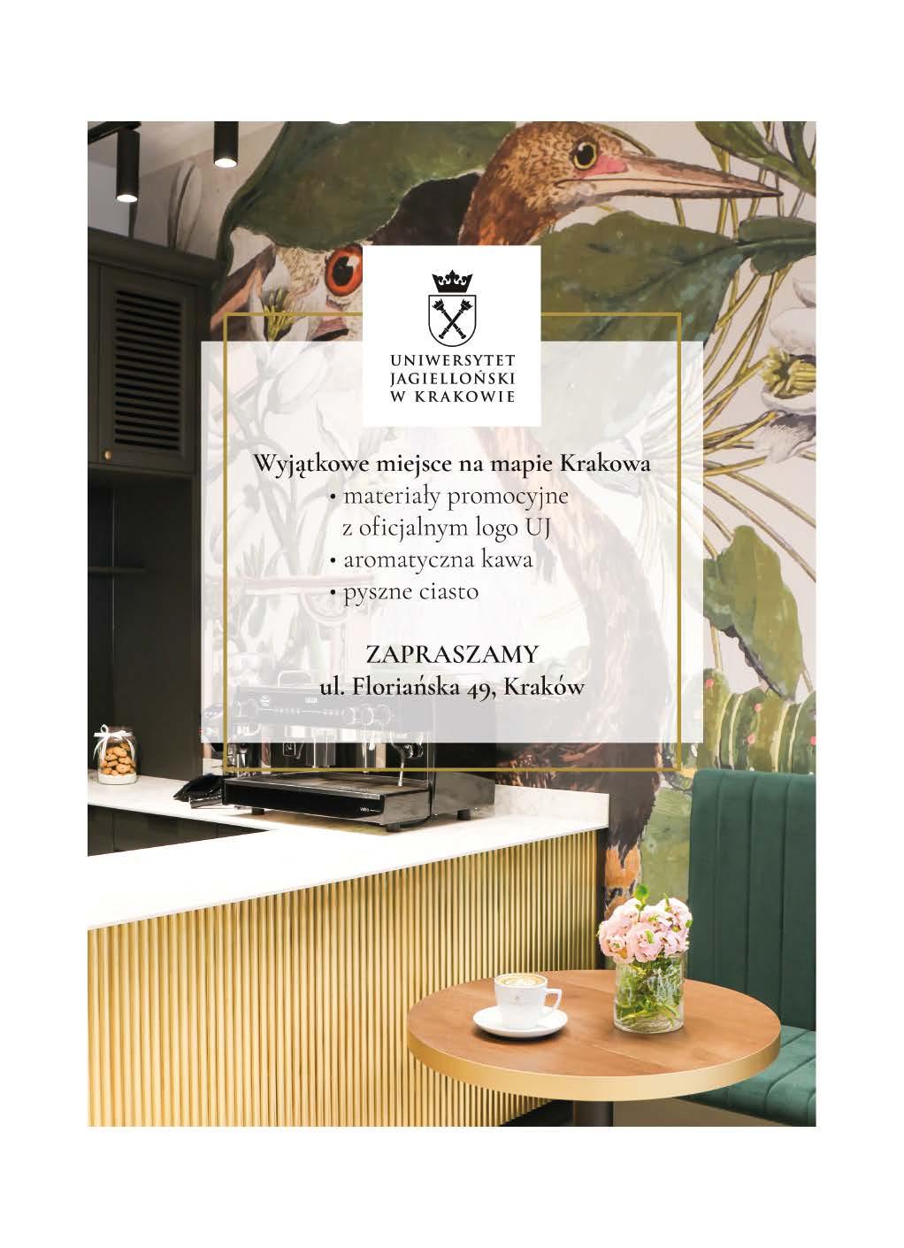 31-126 Kraków, ul. Michałowskiego 9/3 tel. 12 663 23 50 e-mail: almamater@uj.edu.pl www.almamater.uj.edu.pl www.instagram.com/almamateruj
