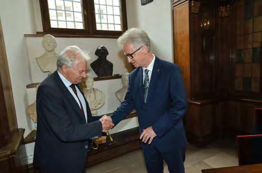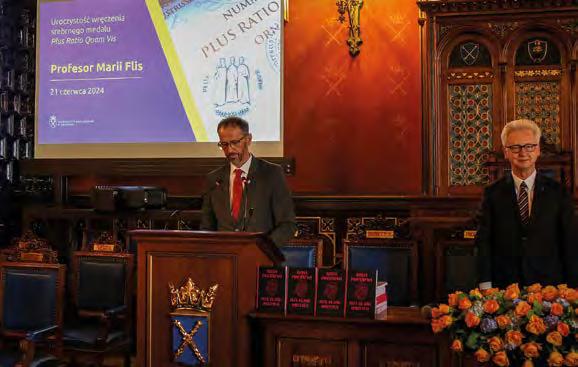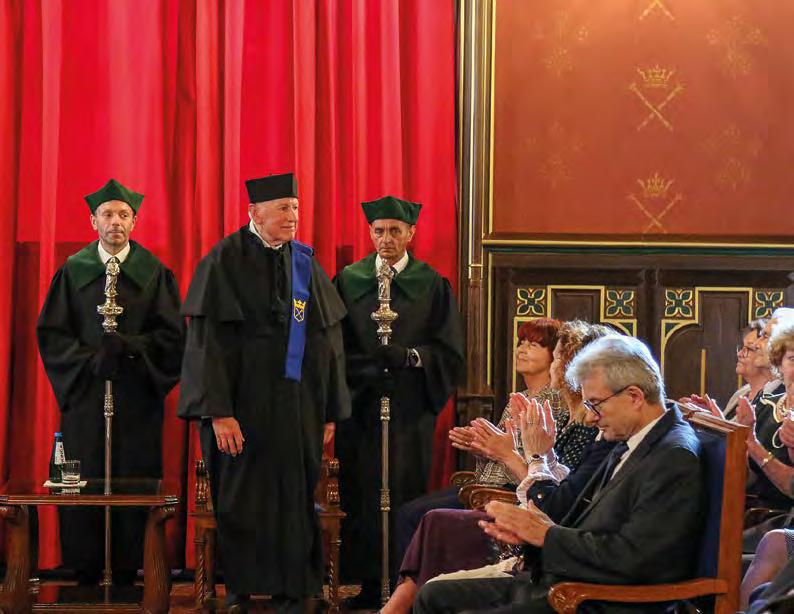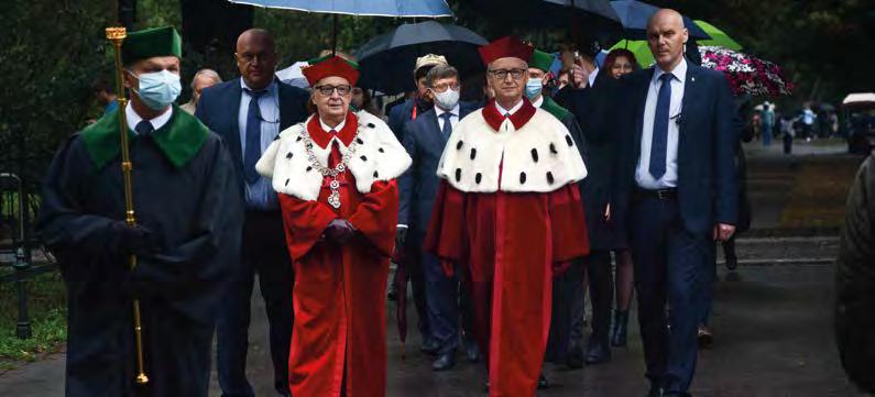 w Ukrainie – mówił ustępujący rektor prof. Jacek Popiel. Za wspólną pracę na rzecz Uniwersytetu podziękował prorektorom, dziekanom, Radzie Uczelni, pracownikom administracji, Samorządowi Studentów i doktorantom.