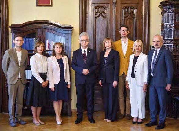 Od prawej: prorektor ds. rozwoju prof. Bartosz Brożek, prorektor ds. Collegium Medicum prof. Maciej Małecki, rektor UJ prof. Piotr Jedynak, prorektor ds. polityki kadrowej i finansowej prof. Joanna Zalewska-Gałosz, prorektor ds. współpracy międzynarodowej prof. Jarosław Górniak, prorektor ds. nauki prof. Wojciech Macyk, prorektor ds. dydaktyki prof. Paweł Laidler