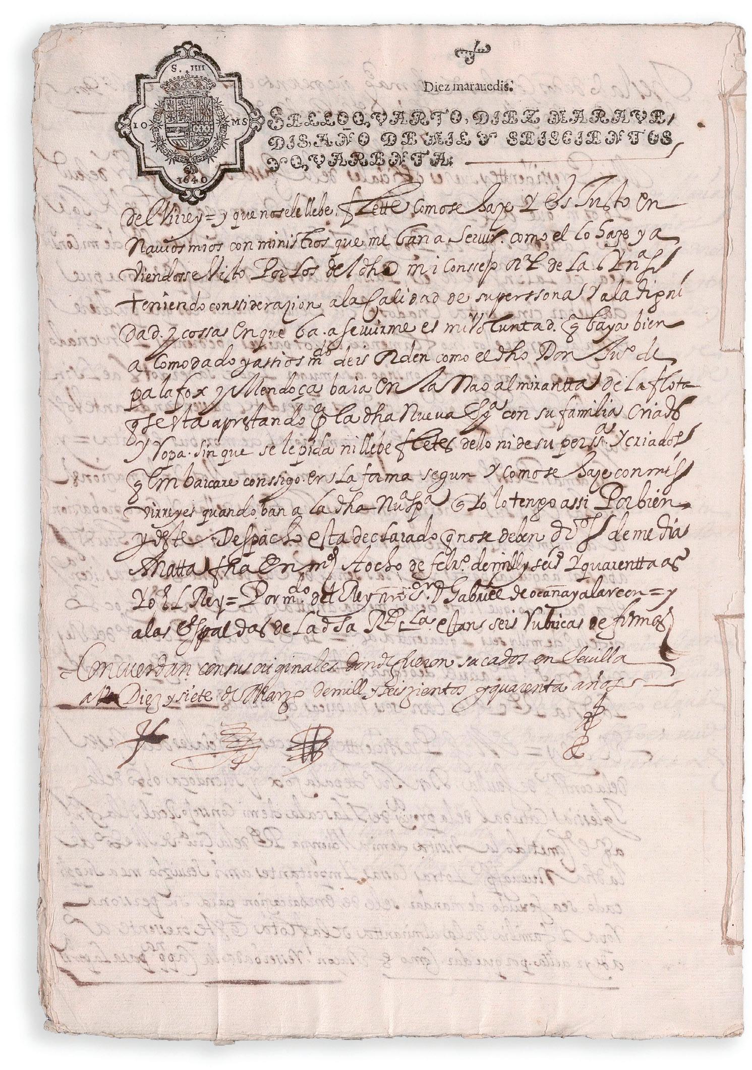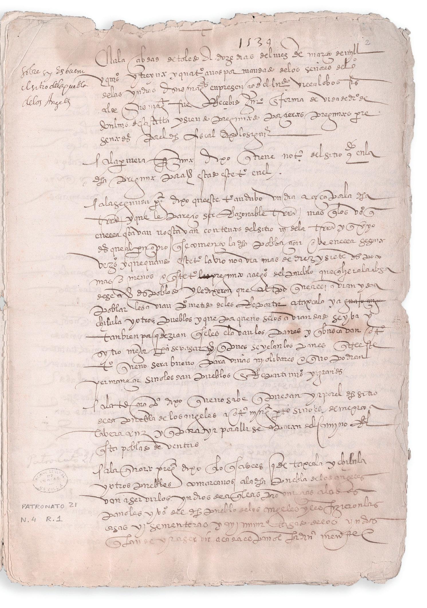 Especificaciones: Escrito en español antiguo, caligrafía tipo cortesana, tinta ferrogálica negra con matices en sepia Archivo General de Indias. Sevilla, España