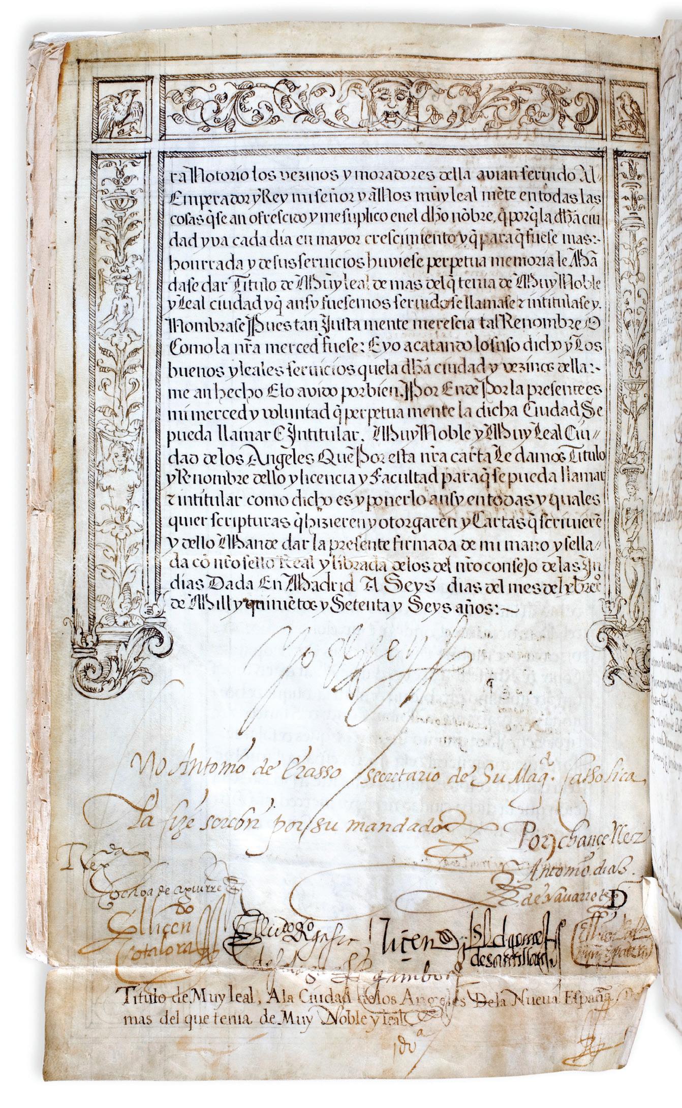 Real Provisión del Rey Felipe II concediendo el título de muy noble y muy leal a la Ciudad de los Ángeles