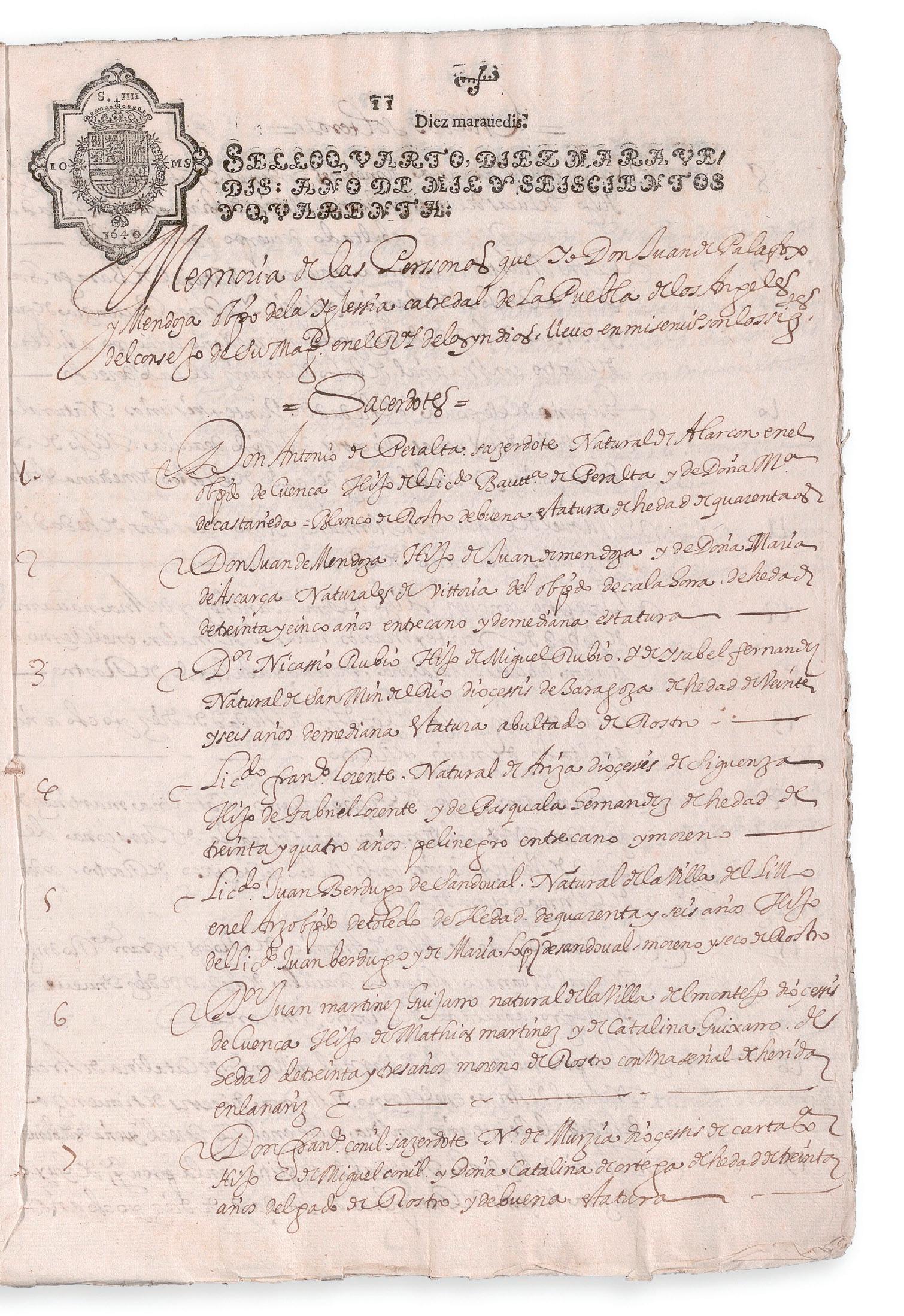 Expediente de información y licencia de pasajero a Indias de Juan de Palafox y Mendoza, obispo de la Puebla de los Ángeles, a Nueva España. Incluye séquito