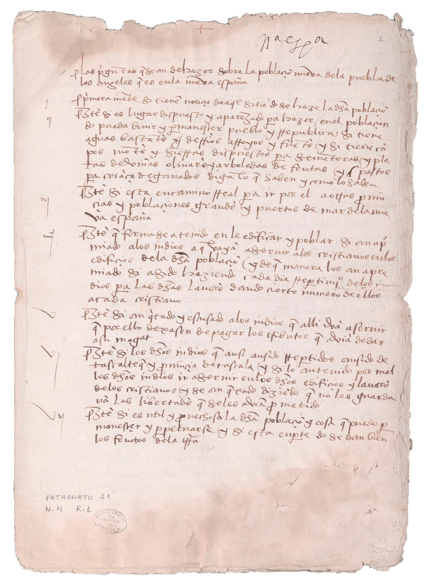 Real cédula concediendo el título de Ciudad de los Ángeles y eximiendo del pago de impuestos a sus habitantes durante treinta años