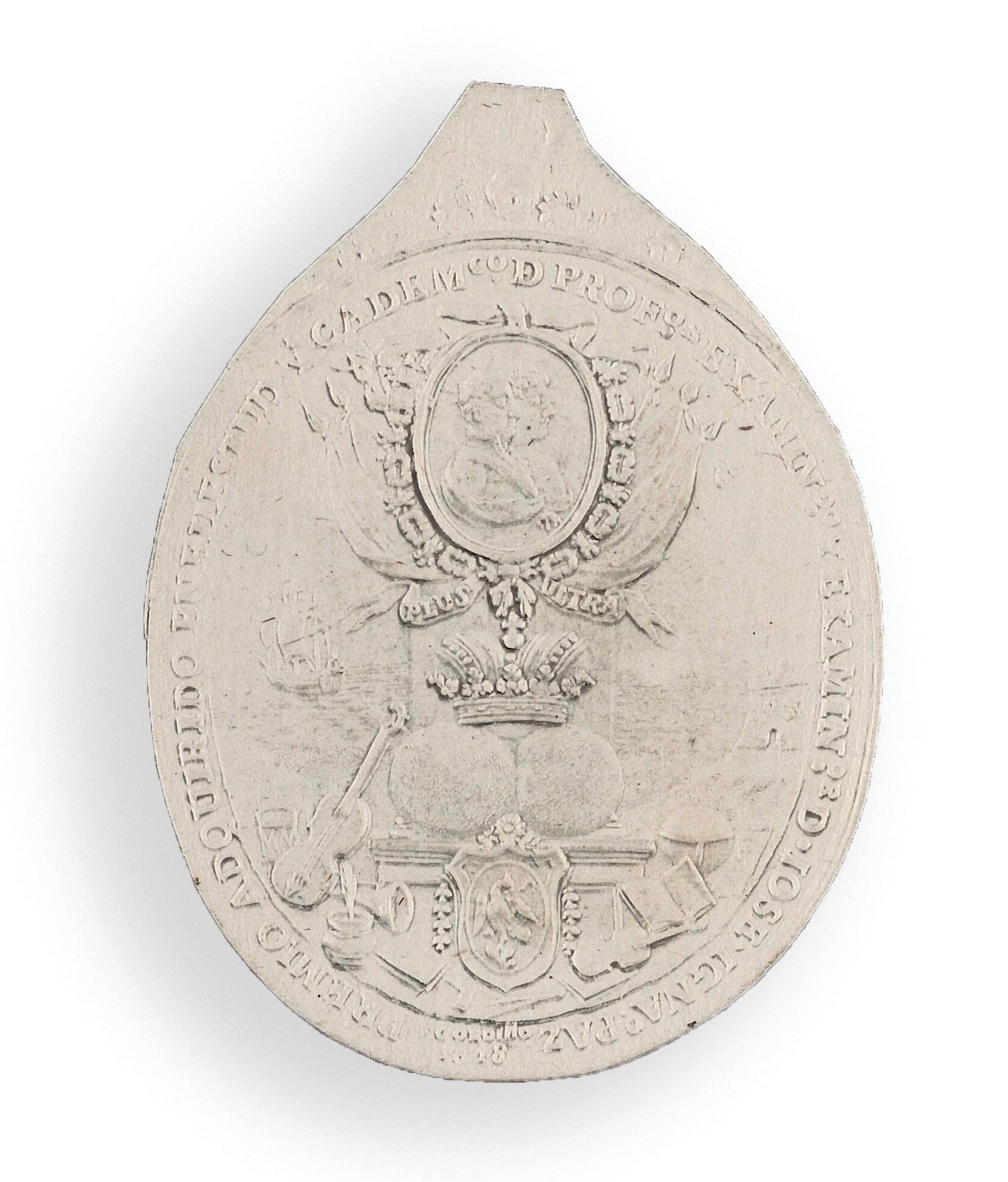 José Ignacio Paz, maestro de primeras letras de la ciudad de México, lideró la escuela de Puebla, en la segunda década del siglo XIX. Bajo su dirección, este diseño de medalla sirvió para premiar a los alumnos más aventajados de su plantel. En ella aparecen las efigies de Fernando VII e Isabel de Braganza, últimos reyes hispánicos que gobernaron Nueva España y Puebla en la era virreinal.