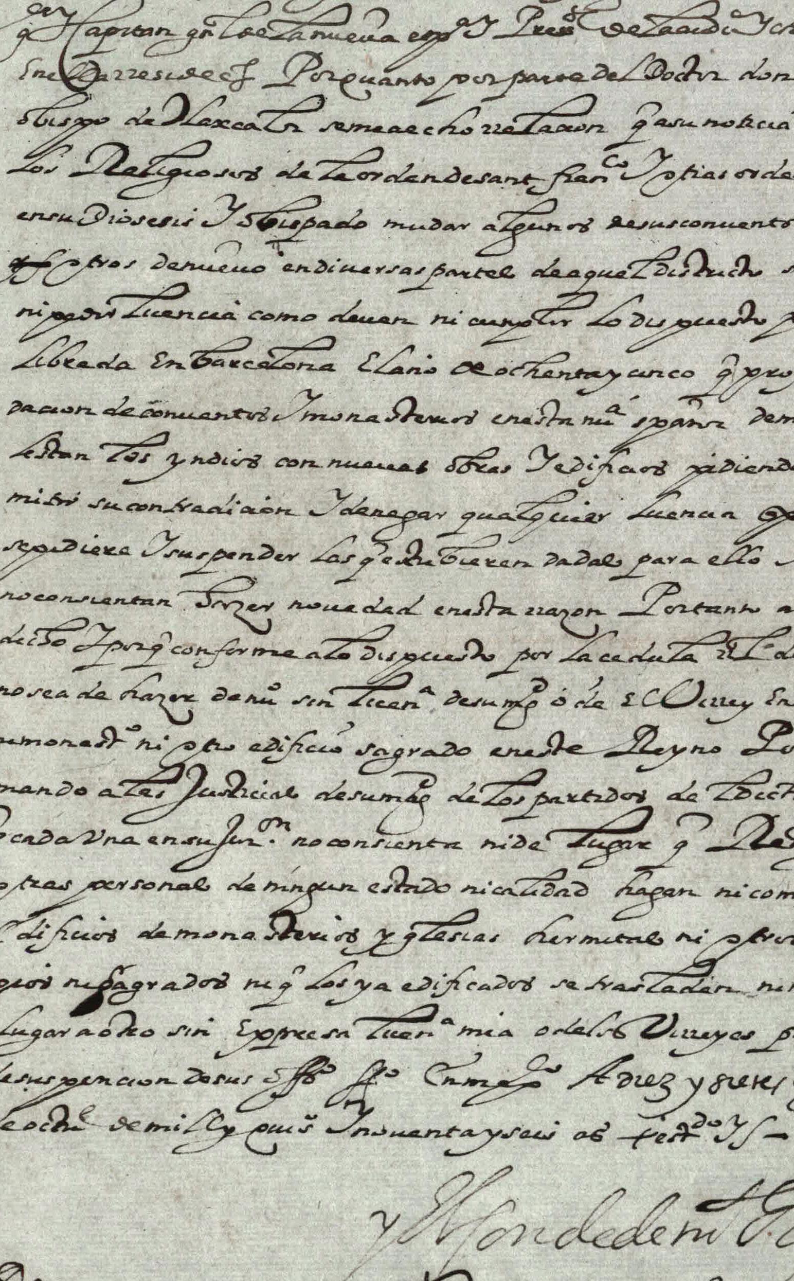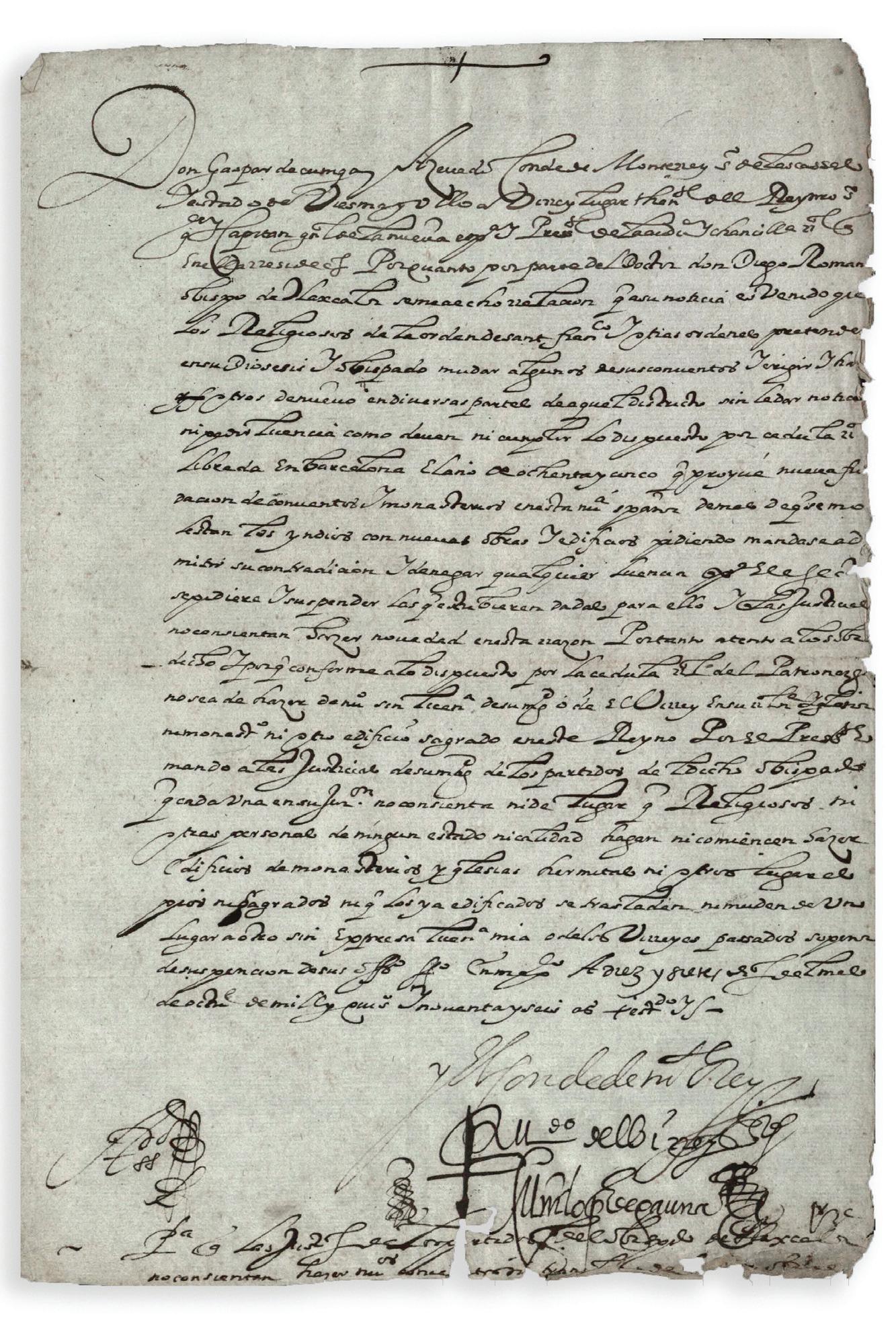 Un precedente para la fundación de Puebla fue la petición que hizo Carlos I al papa León X para erigir un obispado en Yucatán. El sumo pontífice oficializó dicha diócesis en una bula del 24 de enero de 1519. El fraile dominico Julián Garcés, fue elegido para ocupar el cargo; sin embargo, permaneció varios años en España esperando las condiciones propicias para navegar a territorio americano. Seis años más tarde, el rey, ya casado con Isabel de Portugal, solicitó a Clemente VII (papa en turno) nueva autorización para que Garcés se dirigiera a Nueva España. En una bula del 13 de octubre de 1525 el papa aprobó el viaje, pero fijó la sede obispal en Tlaxcala. Este documento del Archivo General de Indias reúne las bulas de León X y Clemente VII, y los privilegios económicos que dieron los reyes hispanos (de arcediano y canónigo) a Garcés como obispo Carolense.