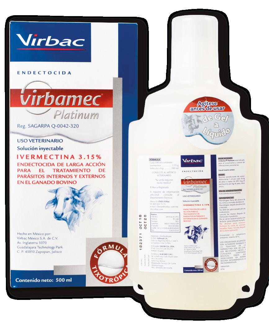 Tiene un vehículo especial tixotrópico, que le con ere un tiempo de acción mayor (menos aplicaciones por año) y más fácil aplicación, además se puede utilizar en animales con 8 días de nacidos y en hembras gestantes.
