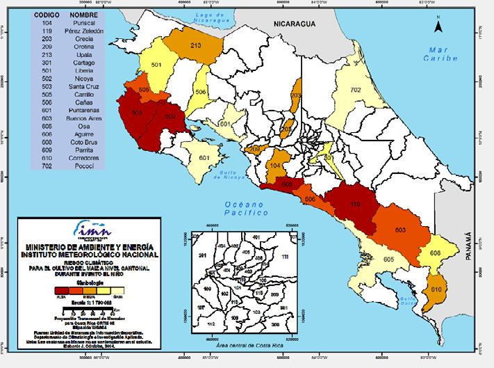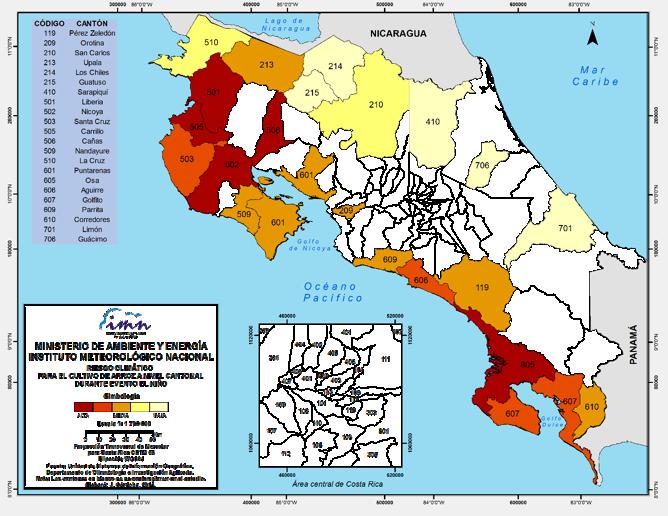 Gráfico 3. Mapa riesgo de disminución en la producción de maíz ante un evento del Fenómeno del Niño. IMN.