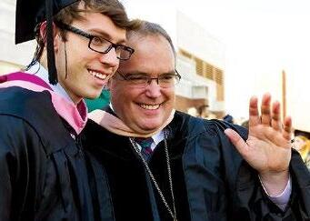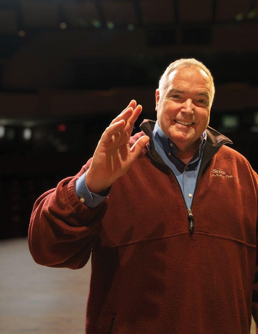 After more than 40 years of dedicated service to Alma College, Choirs Director Will Nichols waves goodbye.
