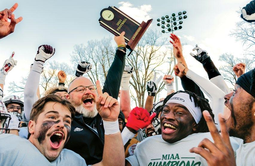 Led by head coach Jason Couch ’97, the Scots once again won the Michigan Intercollegiate Athletic Association (MIAA) championship, en route to the NCAA Division III playoffs. In the second round of the playoffs, they shocked the football world with a thrilling, come-from-behind victory against perennial powerhouse Mount Union University (Ohio).