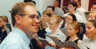 Opposite page: Nichols is pictured leading the Alma College Choir in 1997. The Alma College Choir is known for its vast travel itineraries. In this photo from 2000, the choir is pictured in Washington D.C.
