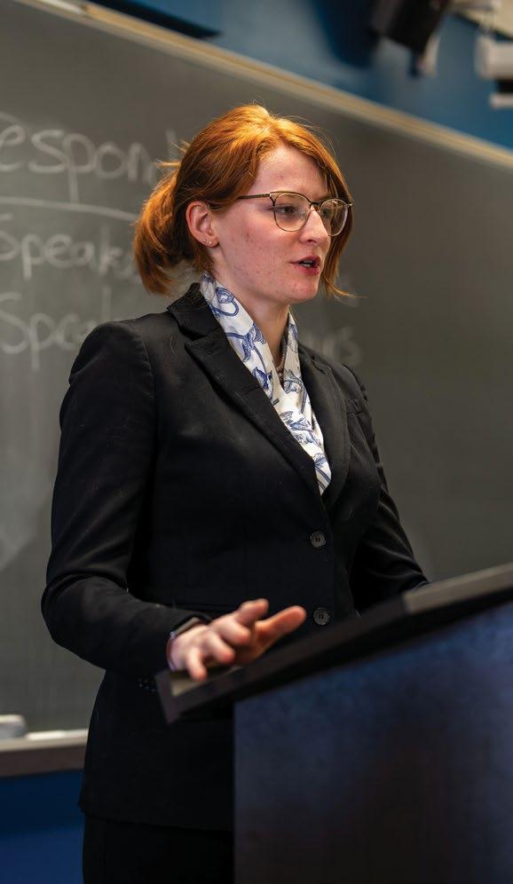 Rauch, also a senior and co-captain, echoes that sentiment. “I enjoy composing arguments and cutting through the facts to the main issues,” she said. “But the presentation— communicating clearly and concisely—was the hardest part for me at first.”