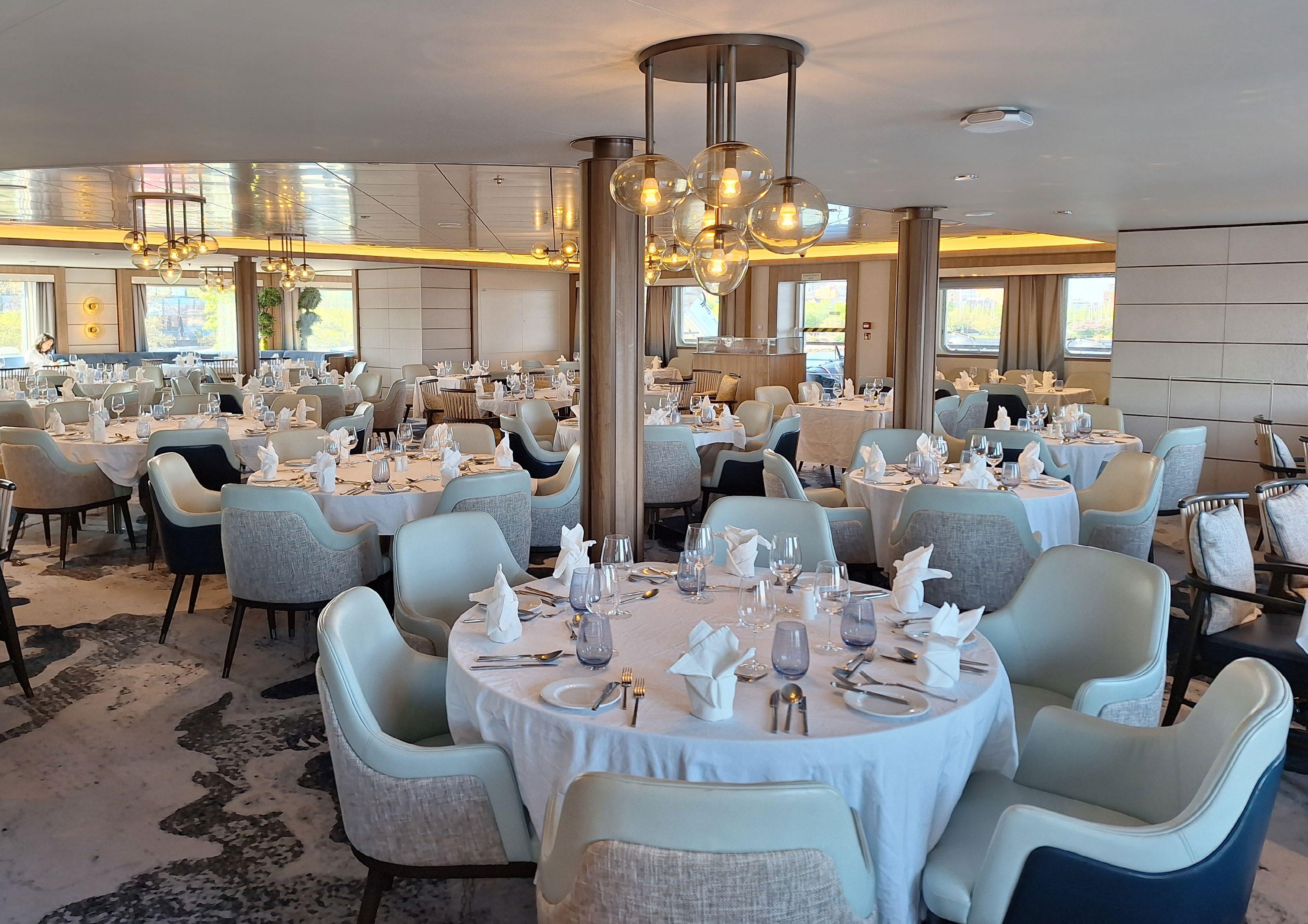 Imagine sailing with me on this ship, knowing that every nautical mile we travel is marked by a 60% reduction in our carbon dioxide emissions, thanks to her advanced marine technology. Previously, up to 24 metric tons of fuel were consumed daily on similar cruise ships, but now, with her efficient systems, she needs only 10 to 12 metric tons to operate without compromising her ability to accommodate some 200 guests in comfort and luxury.