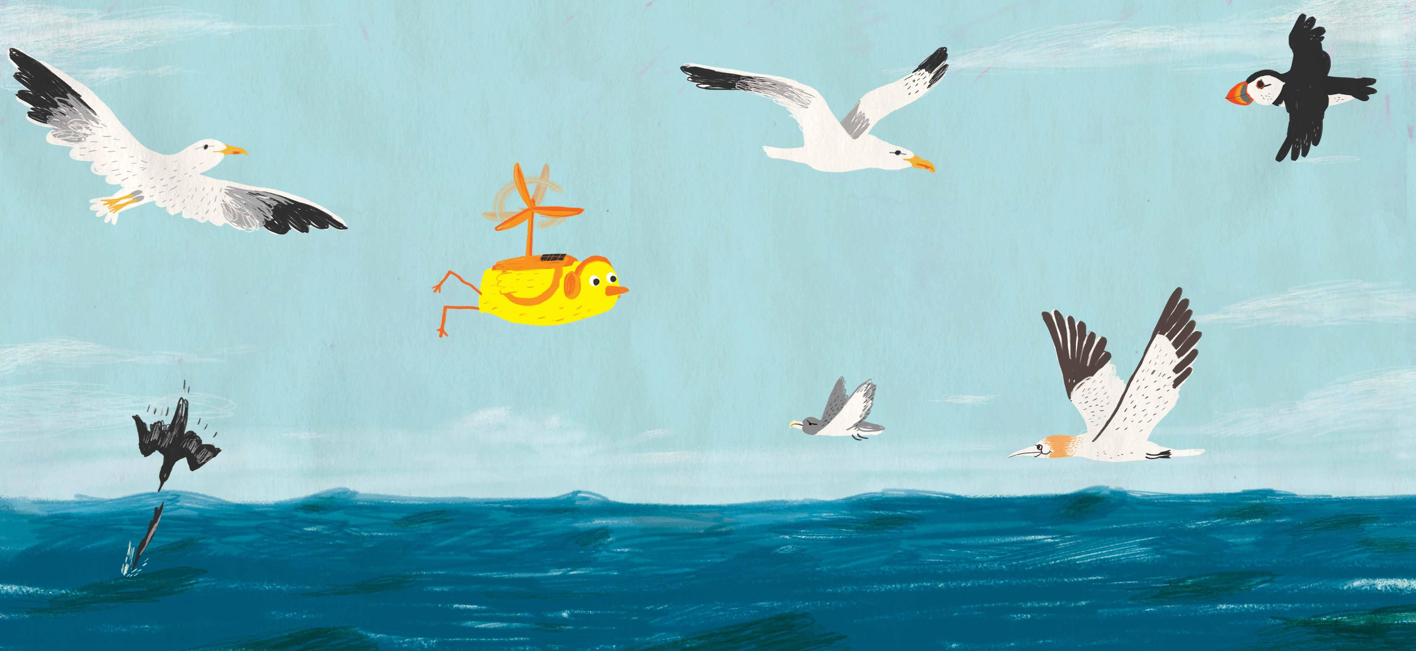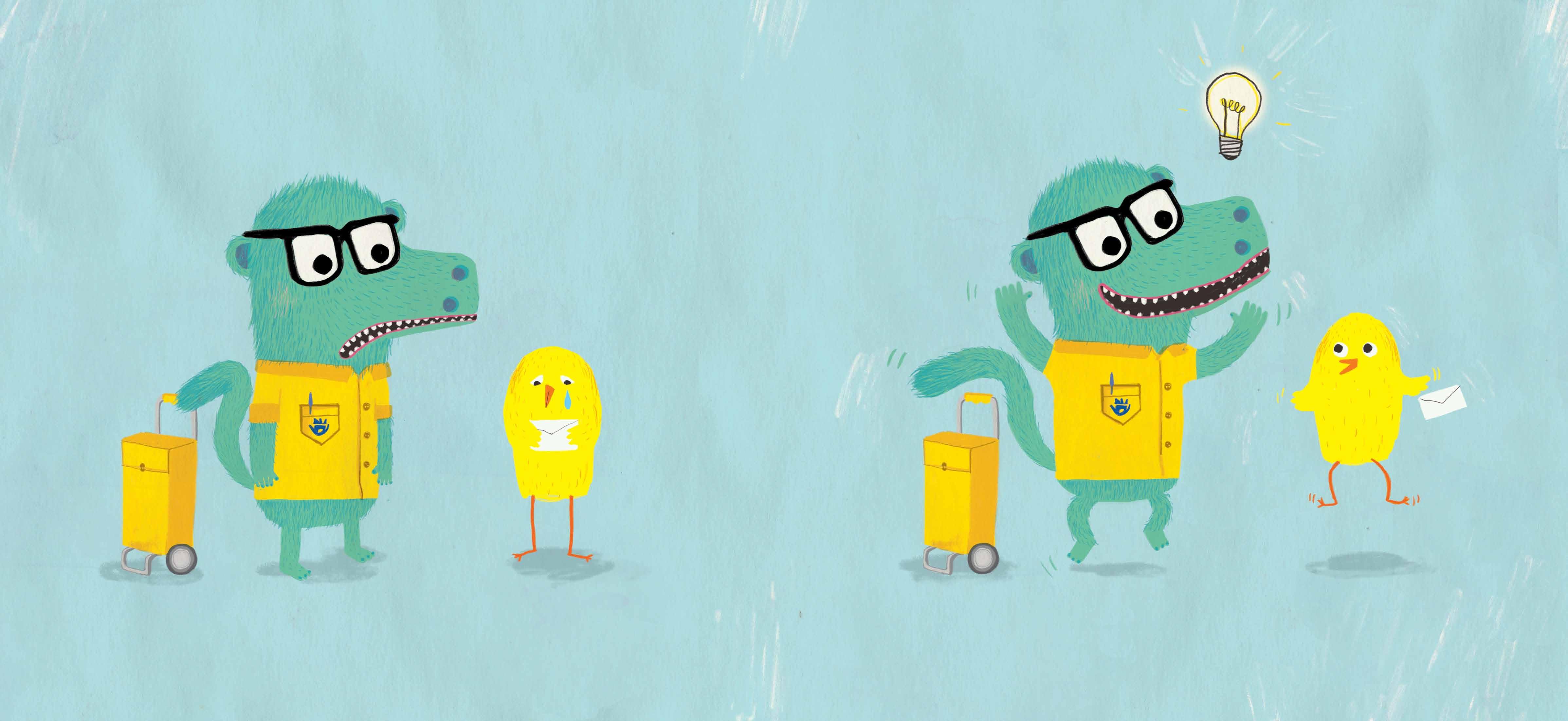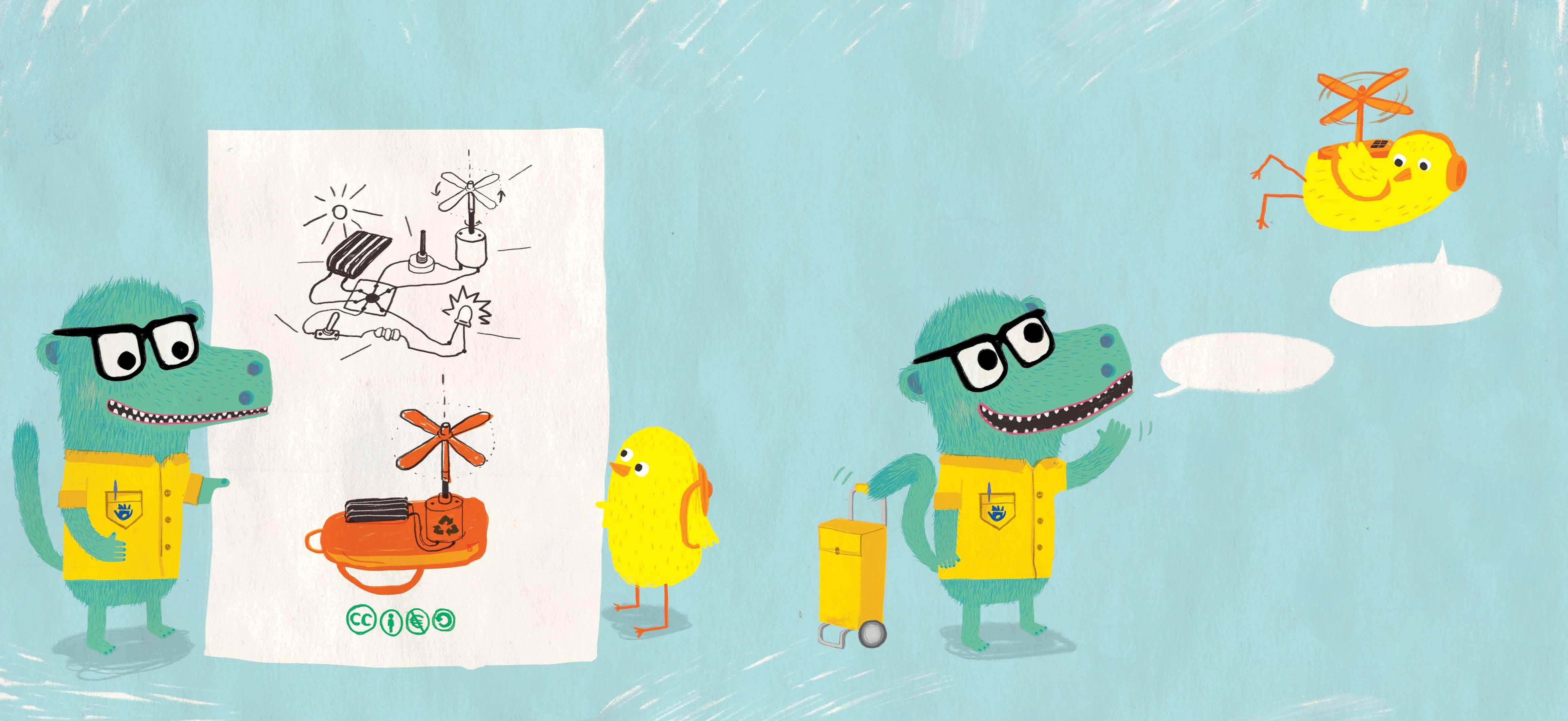 Querido Teo: Gracias a nuestro invento he podido viajar por todo el mundo. Ahora vivo en un lugar muy bonito donde disfruto mucho con mis nuevas amigas y amigos. Compartir nuestro invento ha sido muy útil. Tras adaptarlo Avestruz pudo cumplir su sueño, Gallina se liberó y Kiwi descubrió lugares diferentes. Pingüino lo compartió con Osa Polar para ayudarla a encontrar un nuevo hogar. Espero que vengas pronto a visitarnos. Te quiere. Tu amigo Pájaro Amarillo.