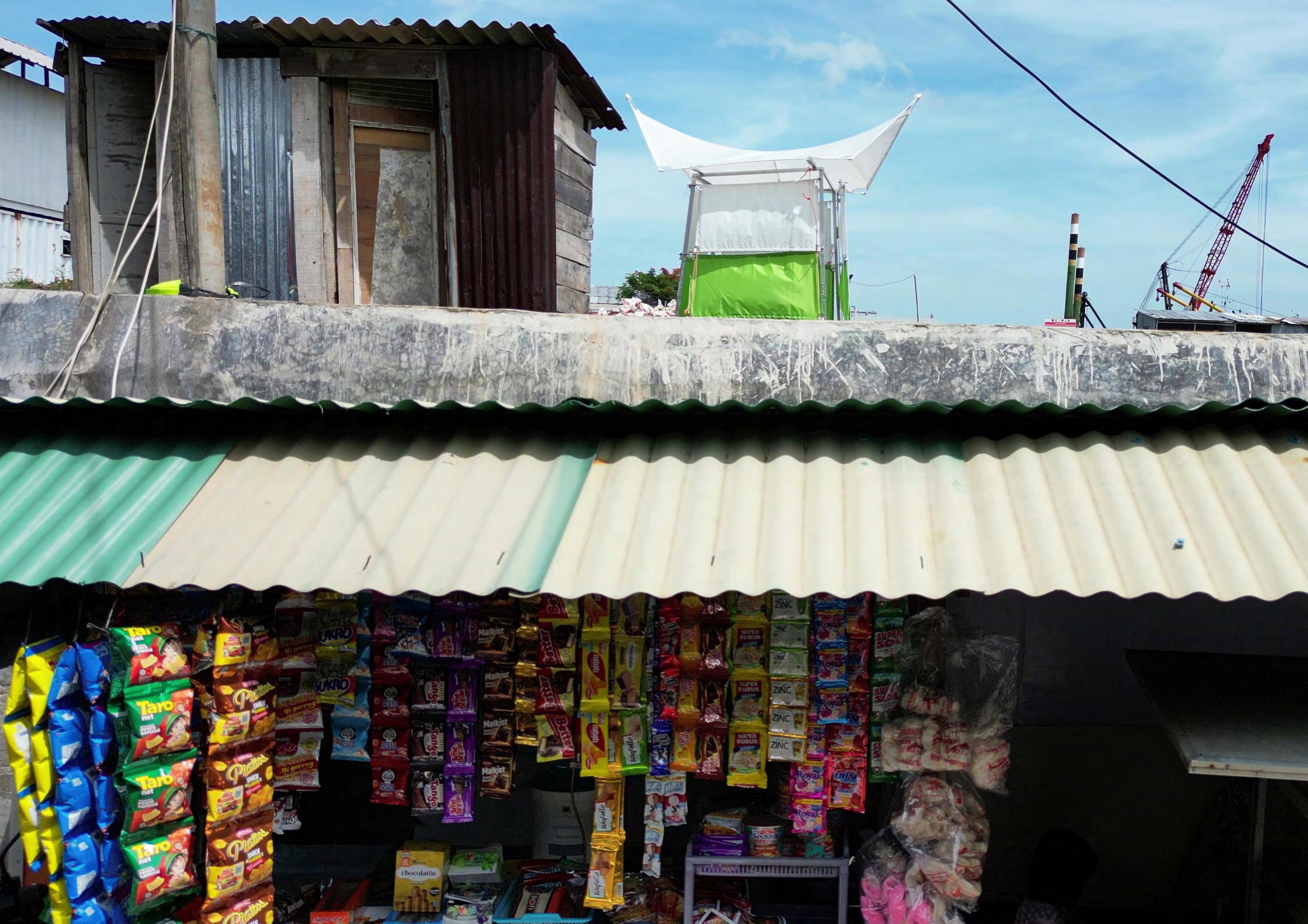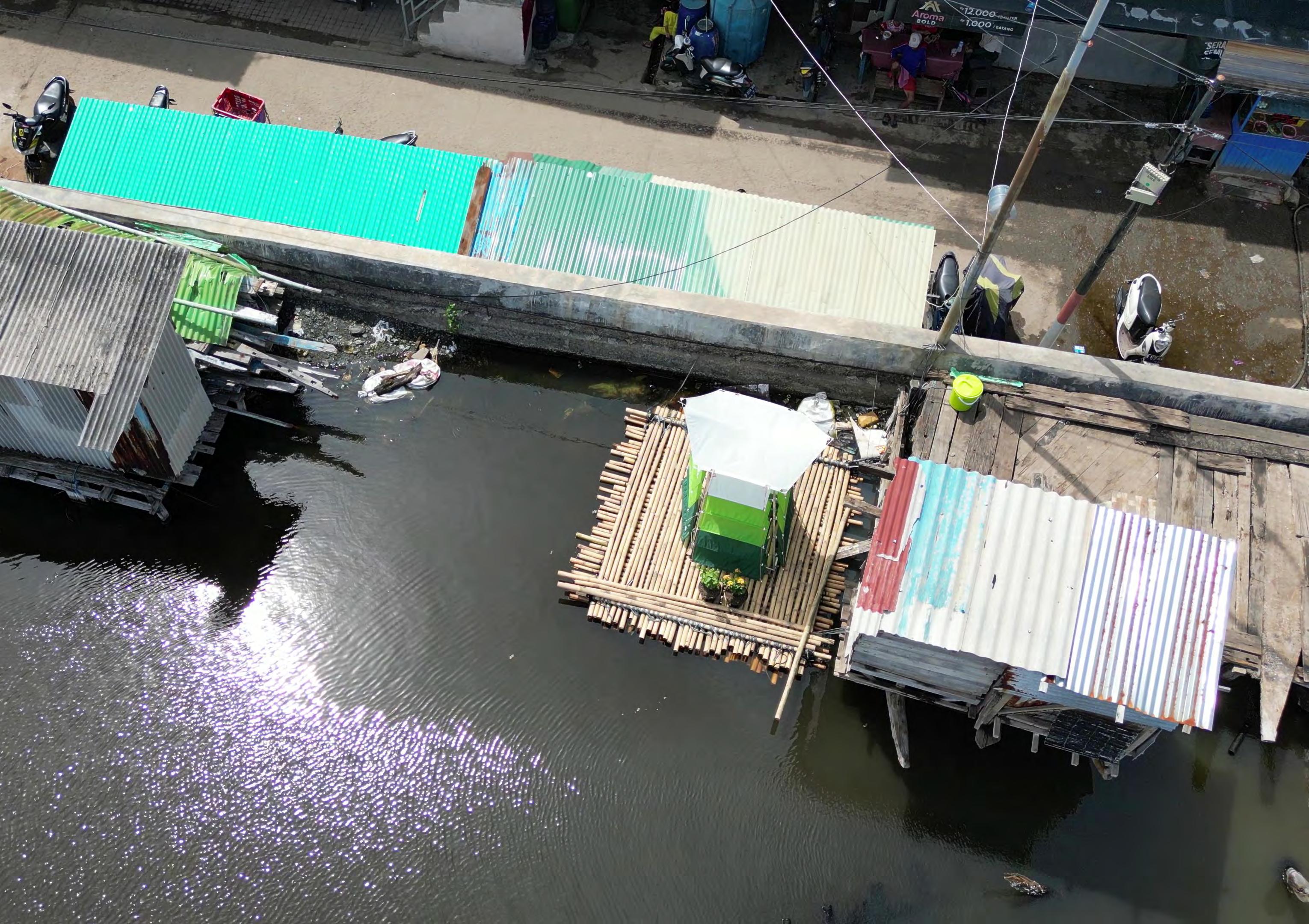 Gedung Pompa has a lot of land, which is used for storage of old rusty cranes and as a workshop for restoring boats. The space can be rearranged to fit both the old functions as well as a permaculture growing on a sanitation system of compost. The program develops over multiple years, starting with the implementation of the sanitation system. After a year when the first compost is done, fruits and vegetable will be planted. These will also need a year for being ripe. Slowly over a couple of years a whole market with vegetables and fruits is developed. In Gedung Pompa there are multiple food delivery drivers on scooters working for various companies. The harvest will be delivered to various restaurants around the city. Now the local vegetable sellers get their vegetable from 3 hours away for Jakarta. These can now be grown locally and sold within the city. This creates an economical connection between the impoverished and the richer parts of Jakarta, hopefully acquiring more income to the kampung. Not only is this a great resource for the locals, the green garden and the fresh soil allows for more water being absorbed into the ground during flooding.