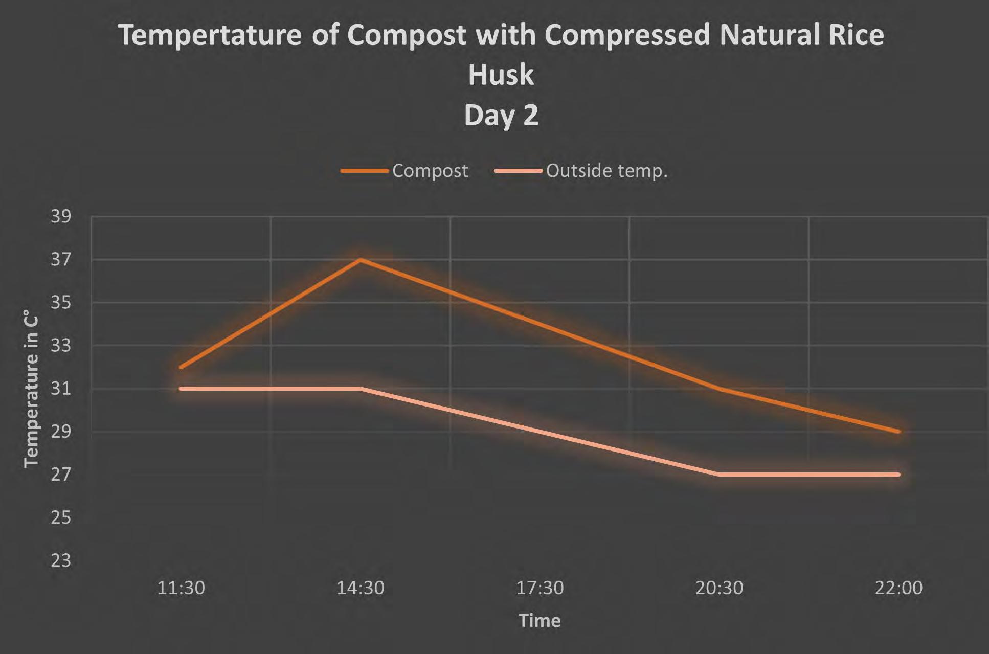 It indicates that a longer timespan would have allowed a bigger temperature rise. A bigger sample would also have improved the results. The bigger the sample/pile the more heat can be generated at the core. The short length of the trip and the limitations in size of the prototype did not allow for this in the experiment. Composting toilets have the potential of creating a healthier and safer sanitation option for the locals of Gedung Pompa, as well as creating a valuable resource in form of soil in the long run.