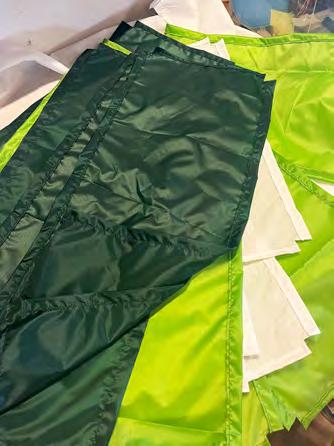 The envelope of the Hot-Air-Balloon is made of ripstop nylon fabric. A Hot-Air-Balloons has a lifespan of around 300 hours. The coating on the fabric breaks down over time making the Hot-Air-Balloon leaking, causing a higher usage of gas. The old Hot-Air-Balloons in Denmark get repaired by the balloon pilot Christoffer Mundt, who has won the Danish championship multiple times. Christoffer was very kind and donate old and new pieces of balloon fabric to the project. The fabric was used to sew the panels for the hut structure of the toilets. The panels are waterproof and allow the toilet to be ventilated. 40 panels were sewn in three different colors, as well as a roof.
