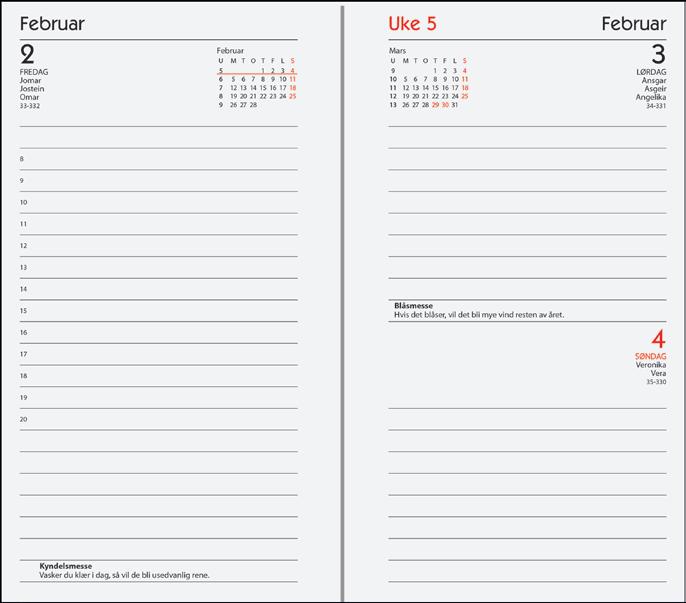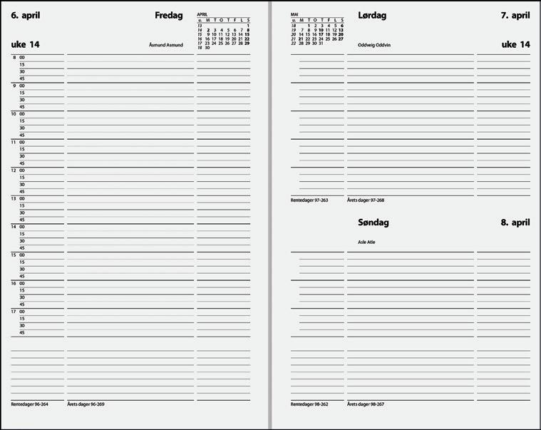 • 8 sider uttrekkbar månedsoversikt for to påfølgende år