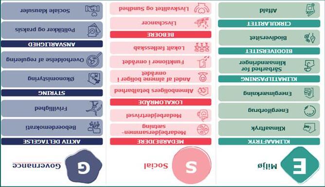 Dækker de mest relevante ESGområder ud fra dobbeltvæsentlighed, lovkrav og andre initiativer