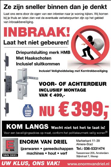Expert in Volkswagen, Audi, Seat en Skoda Jedi Almere Markerkant 14-02 1314 AR Almere T 036 - 533 2020 Jedi Zeewolde Schepenveld 49 3891 ZK Zeewolde T 036 - 522 1330 I www.jedi.nl GROOT ONDERHOUD Nu met GRATIS Jedi Pechhulp! ✔ Originele onderdelen ✔ Goedkoper dan de dealer Plan uw afspraak via www.jedi.nl 18-26 aug 1-3 sep Meer dan 90 activiteiten en 56 uur live muziekoptredens Soms zie je iets waarvan je denkt... Hé, dat is nieuws! Mail het dan naar Onze HOTLINE voor actueel NIEUWS redactie@almeredezeweek.nl HOTLINE APK zonder afspraak €24,79 ex btw Remmingweg 24B | 1332 BG Almere Tel. 06-53446233 / 036-5325267 (€30 incl) Wij zijn gesloten van 31/7 t/m 21/8