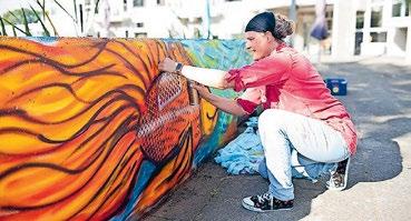 HAVEN – Nicole Eigeman, kunstenaar en bewoner uit Almere Haven, heeft een graffitikunstwerk gemaakt voor ouderen in Almere Haven. Haar canvas was dit keer de vijvermuur in de tuin van woonzorgcentrum de Overloop.