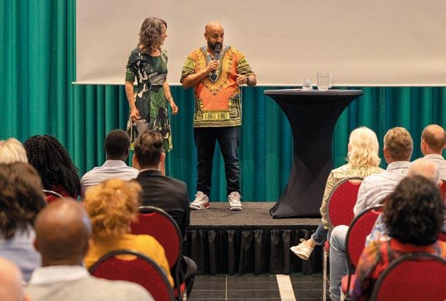 De Ondernemersdag werd geopend met een onvergetelijke toespraak van Mo Hersi. Er werd gedanst, gemasseerd en gelachen. Als succesvol ondernemer en spreker wist Mo Hersi het publiek te enthousiasmeren en zette hij de toon voor een dag vol ondernemerschap en groei. Wethouder Maaike Veeningen benadrukte de belangrijke rol van ondernemers in de economische groei van Almere en hun bijdrage aan de lokale gemeenschap.