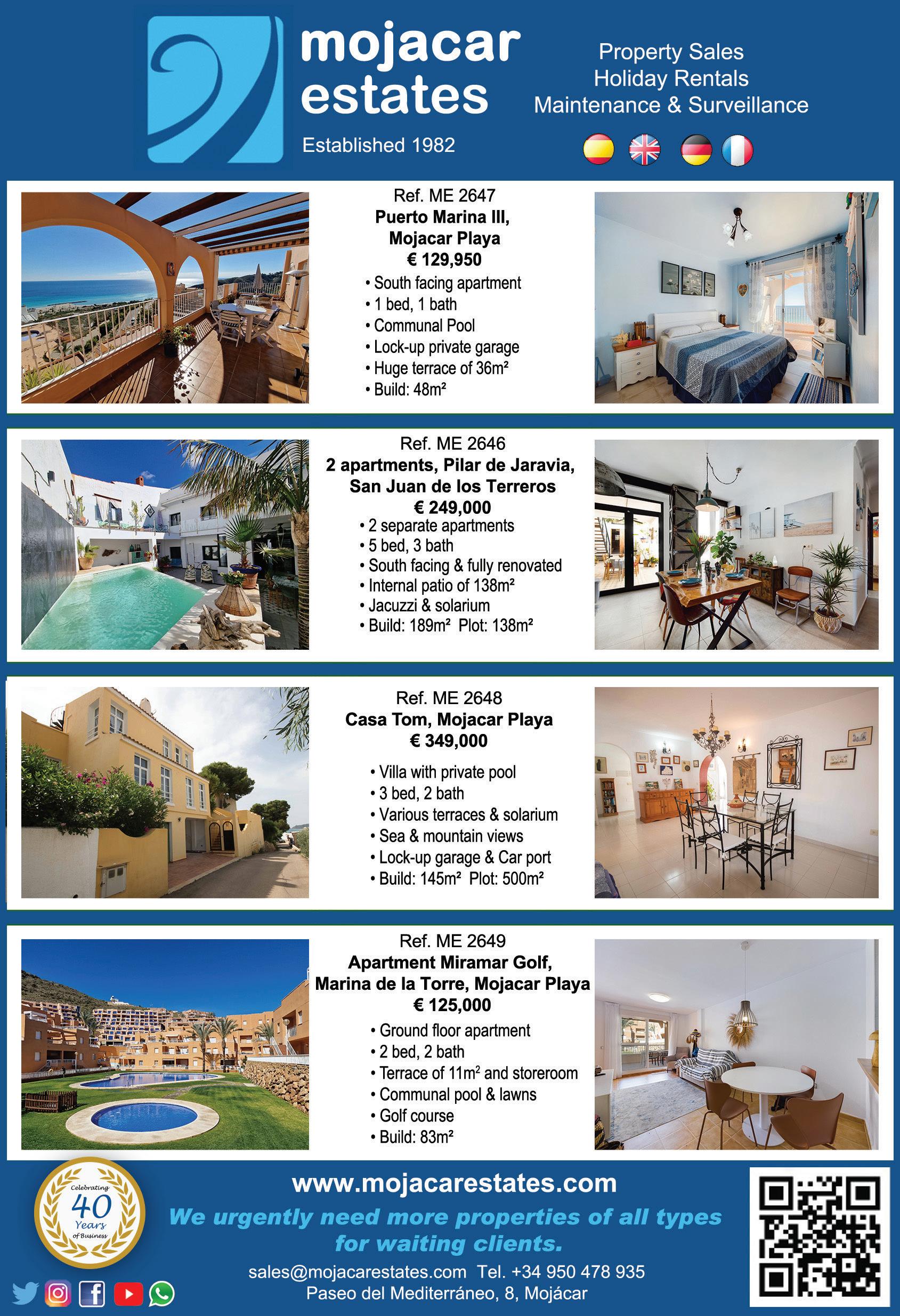 4,000 properties that have not registered. The municipalities with the most properties registered are: Vera (1,858 properties and 8,556 beds), Mojácar (1,422 with 7,202), Níjar (985 with 5,162), Pulpí (614 with 3,077) and Carboneras (357 with 1,748). As regards cities, Roquetas de Mar has 1,252 properties with 5,793 beds and Almería city has 885 with 4,441. New regulations are being introduced that will stop an owner of an apartment in a community from renting it out if this causes problems for other owners. This has become a real problem in some parts of Spain via portals such as ‘Airbnb’ where tourists only occupy a property for one night with a continual turnover. ‘Airbnb’ do stop some customers from doing this at particular times of the year. Throughout Andalucía there are more than 98,000 properties with 515,380 beds, and the authorities state that the economic impact of this type of accommodation was 157 million euros in 2019, and an estimated 195 million in 2022. During the pandemic, there was a large rise in persons wishing to have a holiday in private accommodation, as they thought that staying in a hotel was too risky.