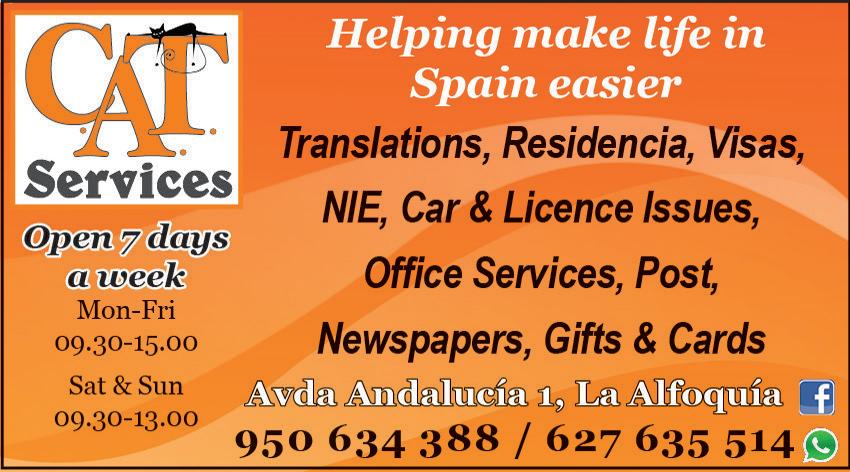 Welcome to the Almería Focus Magazine and useful A-Z Directory for the Levante area, with more than 2000 entries and contact numbers! View it online at www.issuu.com/almeriafocus. The Focus is free every month and distributed from Mojácar to San Juan de los Terreros on the coast and inland as far as Albox and Huércal-Overa.