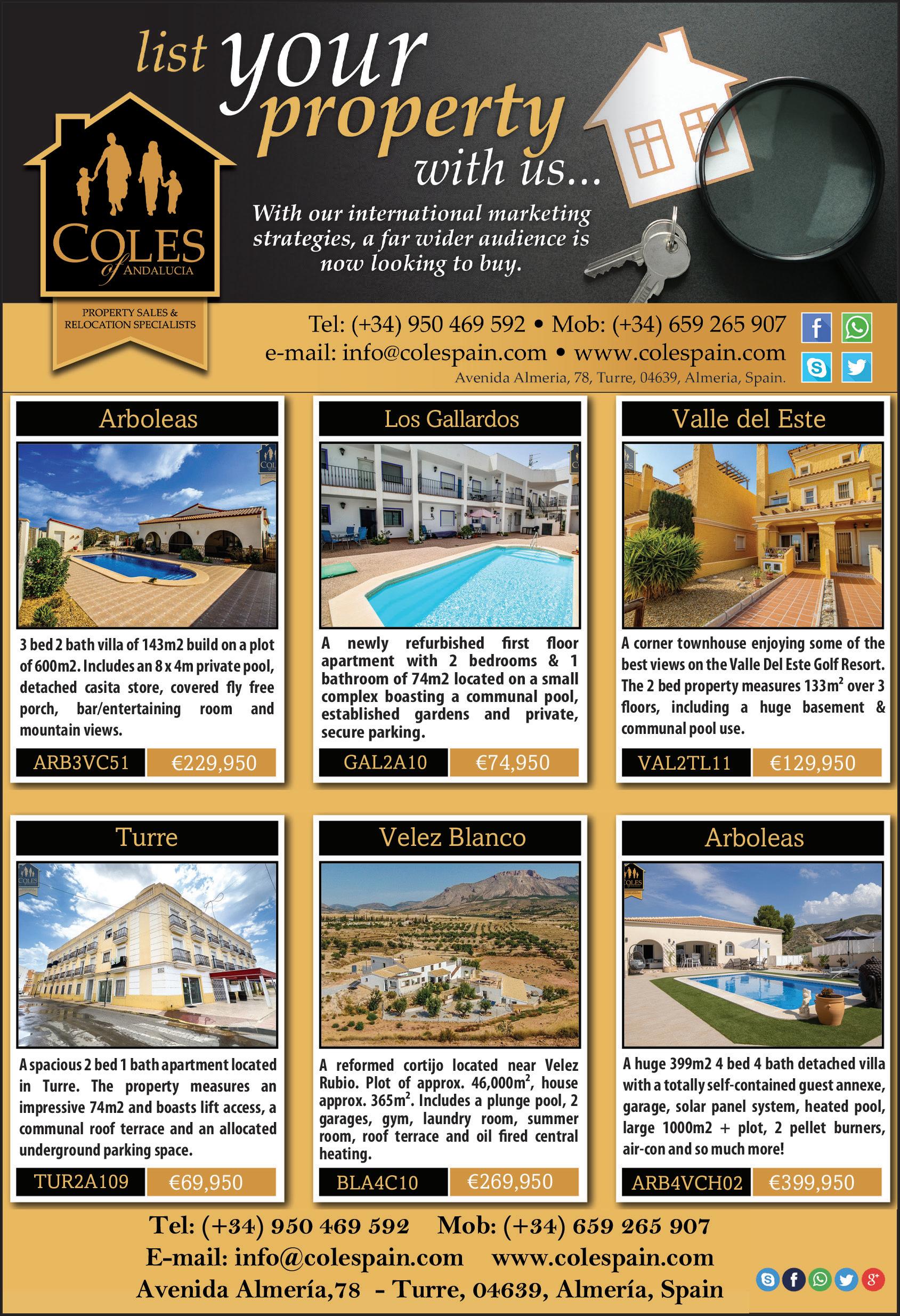 The Almería Focus is an independent publication produced and printed in Almería. We cannot be responsible for claims made by advertisers, nor errors in advertisements caused by poor quality submissions. Neither are we responsible for any loss or damage resulting from any error, inaccuracy or non-appearance of an advert. The purchase of advertising space does not give the advertiser ownership of any advert, unless supplied to us as finished artwork or via a design agency. Adverts designed by the Almeria Focus Layout Department, including its photos, logos and specialised fonts remain the property of the Almería Focus magazine and cannot be scanned, partially or fully reproduced, or proofs supplied to other publications. Action will be taken against persons, companies, publishers, printers or distributors who infringe this copyright. Deposito Legal: AL-956-2008 Nº 148