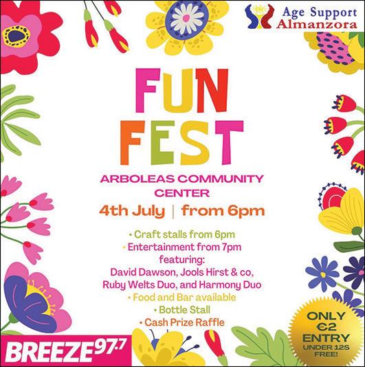 Mon/Wed/Fri, 9.30 - 10.30 am, building with blue door next to swimming pool bar, Arboleas. Beginners welcome. Contact Chairperson - Keith tel 634 326 350.