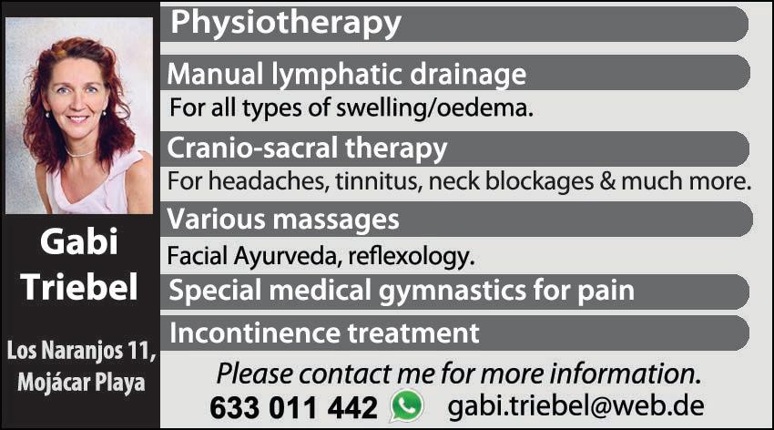 Sophia Wellness Centre Arboleas, Thurs 12.30pm, Contact Vicki 650 764 623 or vicki.lynch@live.co.uk