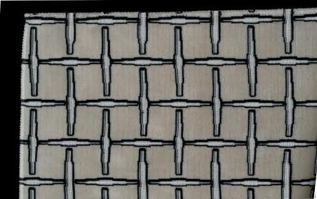 Charakteryzuje się bardzo grubym splotem utkanym w duże geometryczne formy składające się z pełnych kół.