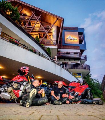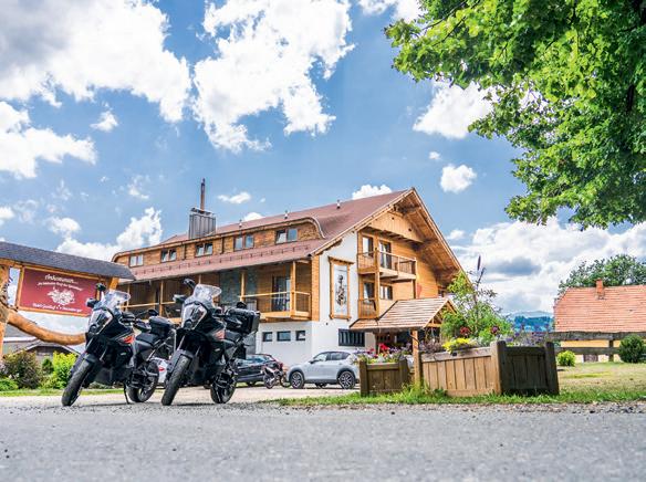Ausstattung: Motorradgarage mit Videoüberwachung, Werkzeug für Basisreparaturen, Handwaschanlage für Motorräder, Trocknen der Motorradbekleidung, Motorradverleih, Motorradkarten mit GPX-Daten, GPS-Geräte und Tourenberatung, Wellness, Fitness, Restaurant, Bike-Hotel, Fahrradverleih und geführte Radtouren.