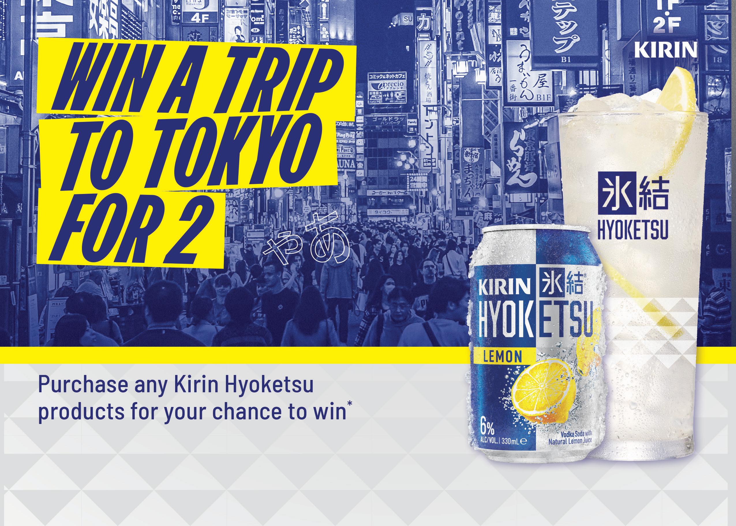 *PROMOTION OPEN ONLY TO AUSTRALIAN LIQUOR MARKETS (ALM) WHOLESALE LIQUOR CUSTOMERS (“ELIGIBLE VENUE”) HELPLINE: 1800 308 388. ENDS 11:59PM AEDT 1/01/26. LIMIT ONE (1) ENTRY PER CASE PURCHASED. LIMIT FIVE (5) ENTRIES PER KEG PURCHASED. STARTS 9AM AEDT 1/11/25. DRAW: 12PM AEDT ON 02/02/26 AT PLEXUS, LEVEL 4, 411 COLLINS STREET, MELBOURNE VIC 3000. WINNERS PUBLISHED AT HTTPS://GO.PLEXUS.CO/HUBFS/TERMS/ KIRINHYOKETSUALMCUSTOMERINCENTIVE.PDF BY 2/9/26. PRIZES: A TRIP TO TOKYO JAPAN FOR THE WINNER AND ONE FRIEND (AGED 18 YEARS OR OVER) (UP TO $10,996). THE PROMOTER SUPPORTS THE RESPONSIBLE SERVICE OF ALCOHOL. SEE HTTPS://GO.PLEXUS.CO/HUBFS/TERMS/KIRINHYOKETSUALMCUSTOMERINCENTIVE.PDF FOR TERMS AND CONDITIONS. NSW AUTHORITY NO. TP/04447. PERMIT NO’S: ACT TP 25/02242 & SA T25/1698