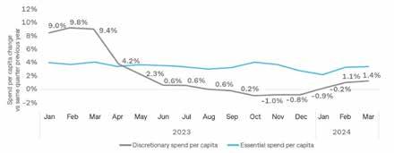 Higher costs of living remain an entrenched reality that’s squeezing household budgets. There was only a 1.4% bump in discretionary spending, the lever people are more likely to pull to keep their budget in check.