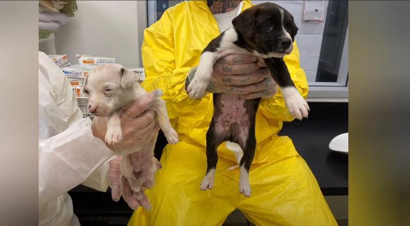 We got word from a rescue partner that they were transporting some puppies to us, and that one of the pups was significantly smaller than the others and in rough condition. When we first saw him, we thought he had passed away — he looked that bad.
