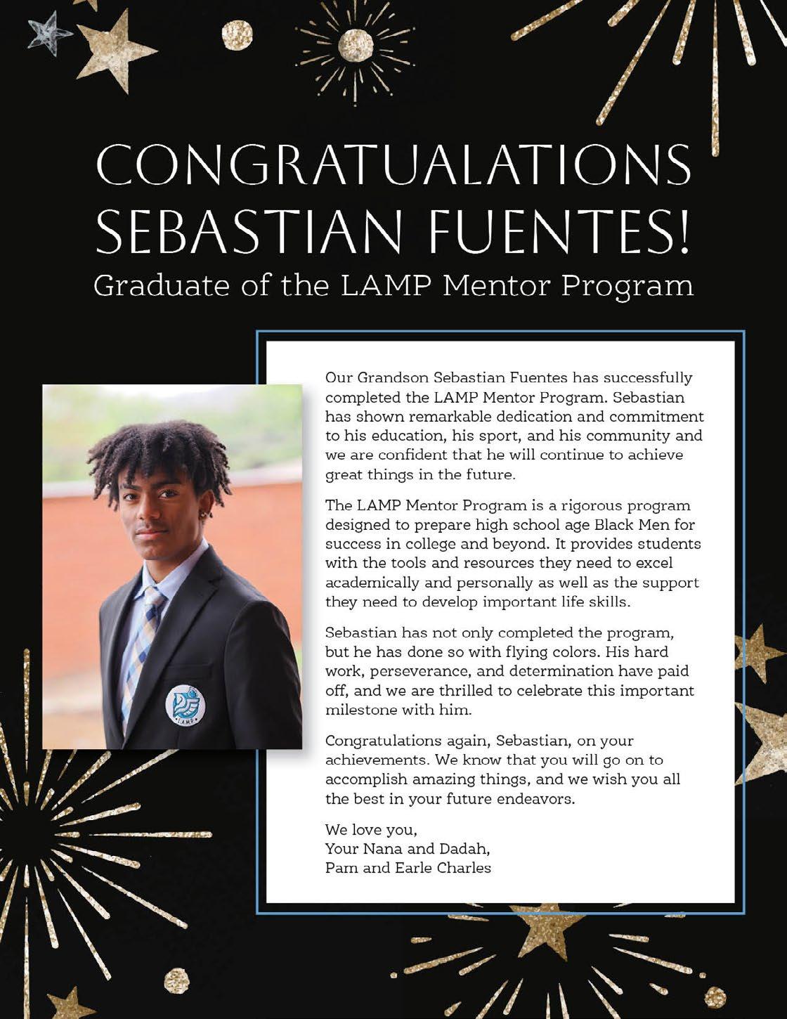 In addition to scholarships, these young men have guaranteed themselves life-long mentors who represent leadership from a wide-array of professions. We could not be prouder to present our L.A.M.P. scholars to you and share the promising highlights of their achievements during this program.
