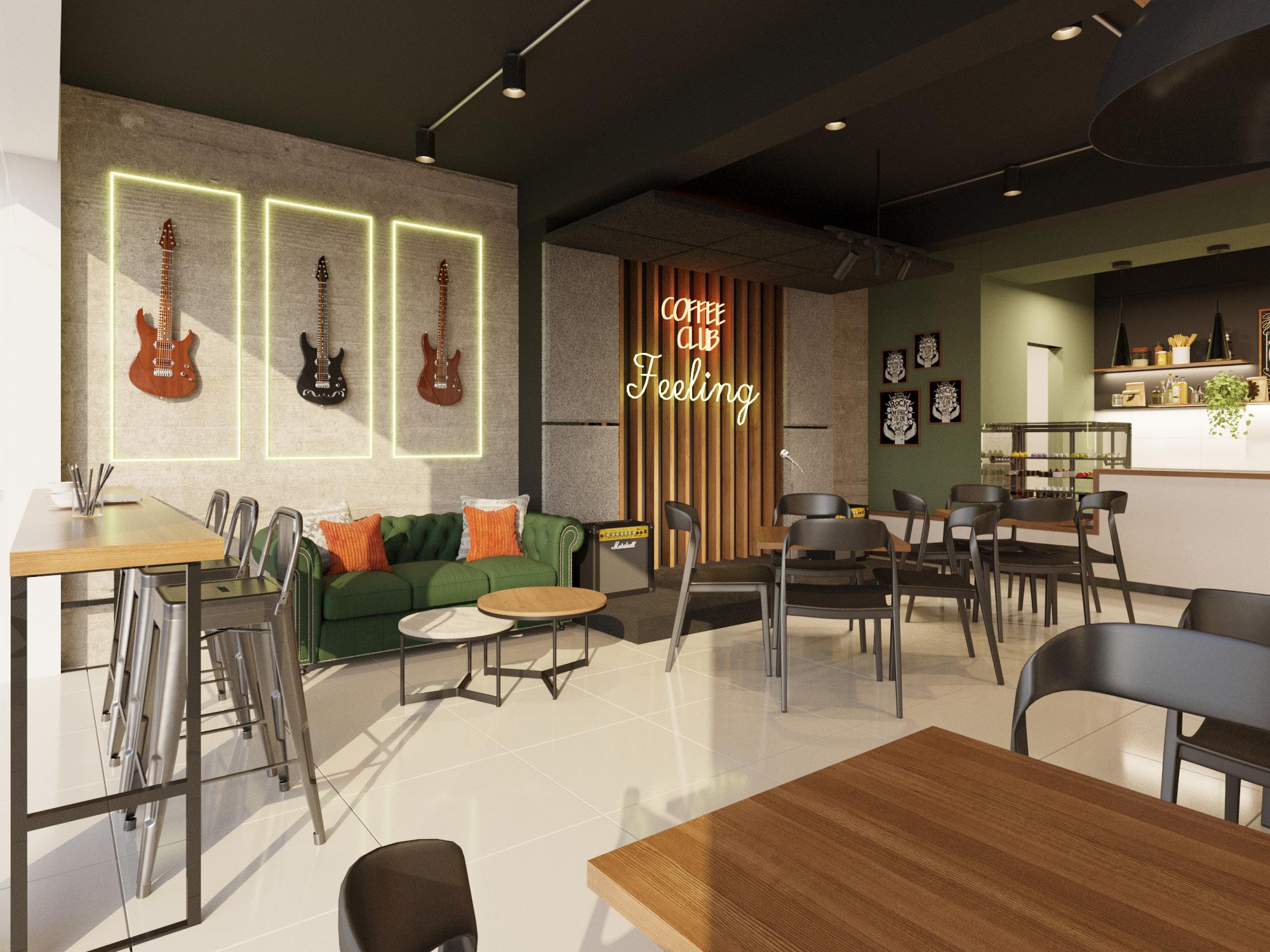 The project consist of a Cafe design with musical theme. In this case, the clients requested a small stage where their students could perform.