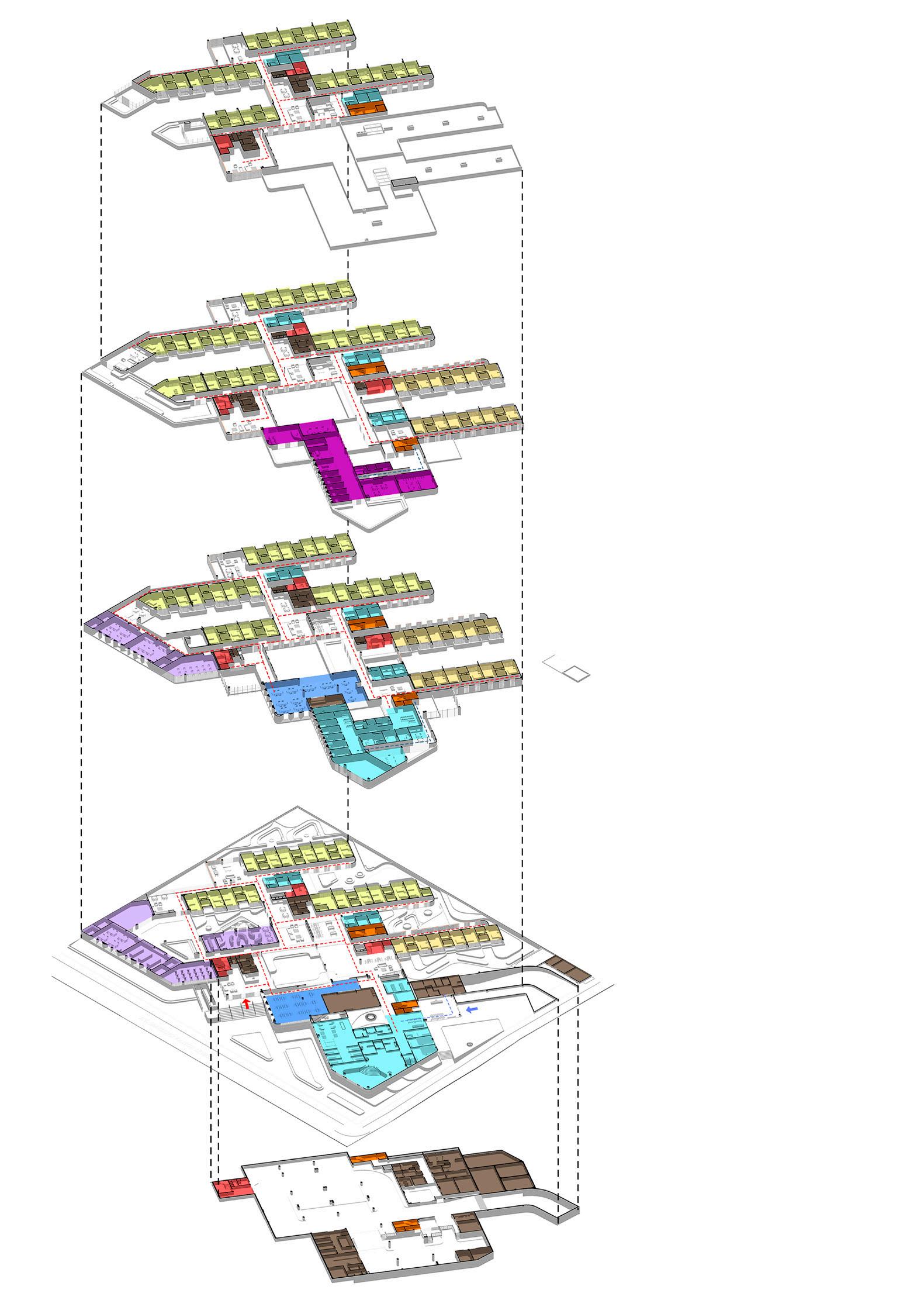 The volumes move in diferent directions to crearte courtyard that provides natural light and ventilation.