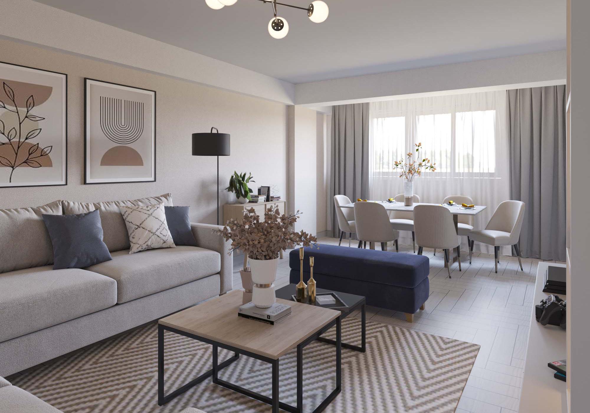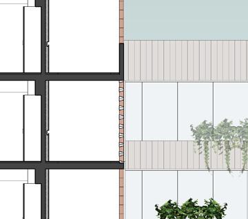 A new volume is created to protect rooms from street noise and provide them privacy.