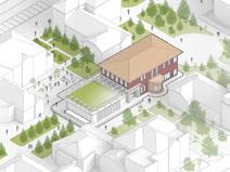 The new green areas, meeting spots and entrance volumes to subway are delimited