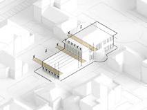 • Development of the schematic concept for the renovation of a disused building, and development of a housing complex at the level of layout and architectural details.