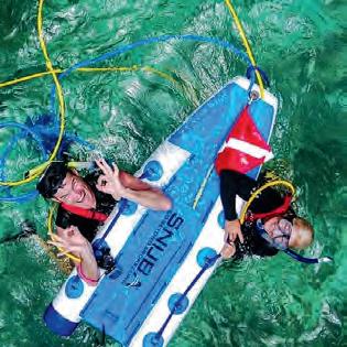 The perfect blend of snorkelling and diving, SNUBA is a unique way to enjoy the underwater world, allowing people that don’t have their dive certifications to get more of an immersive experience than they would have while snorkelling. There is no cumbersome or complicated equipment: SNUBA allows you to submerge to a maximum depth of 20 foot while connected to an air supply on a raft at the surface. SNUBA is suitable for children as young as 8 years old, which makes it an ideal, familyfriendly way to give enthusiastic swimmers a first dive experience.