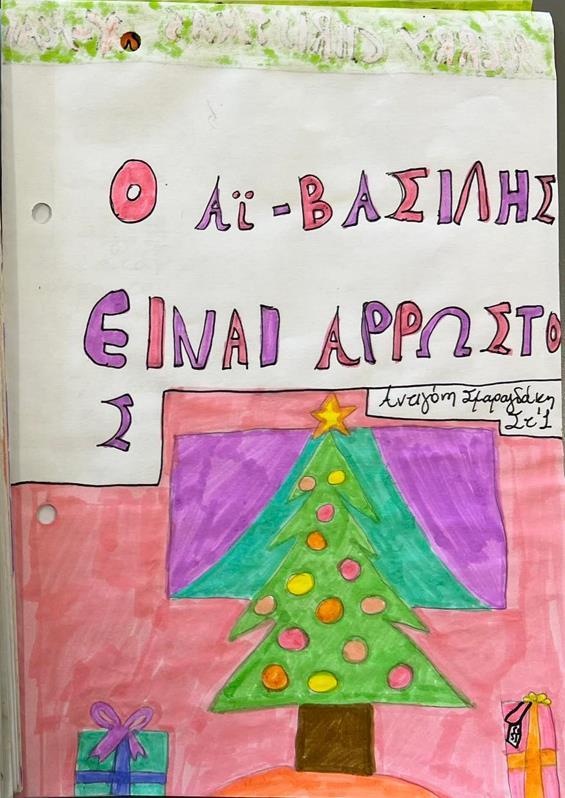 Μια φορά και έναν καιρό ζούσε ο «Άγιος Βασίλης » και είχε ένα σκοπό να μοιράσει όλα τα δώρα σε όλα τα παιδιά για να ευχαριστηθούν .Ο « Άγιος Βασίλης» είπε στα ξωτικά ότι πρέπει να δώσουν τα δώρα σε όλα τα παιδιά και τα ξωτικά ήδη είχαν αρχίσει να δουλεύουν. Μετά ο «Άγιος Βασίλης» κοίταξε κάτω στον κόσμο ένα παιδί ήταν χαρούμενο και ένα άλλο παιδί ήταν λυπημένο επειδή νόμιζε πως θα πάρει κάρβουνα