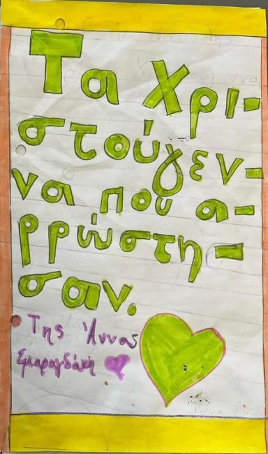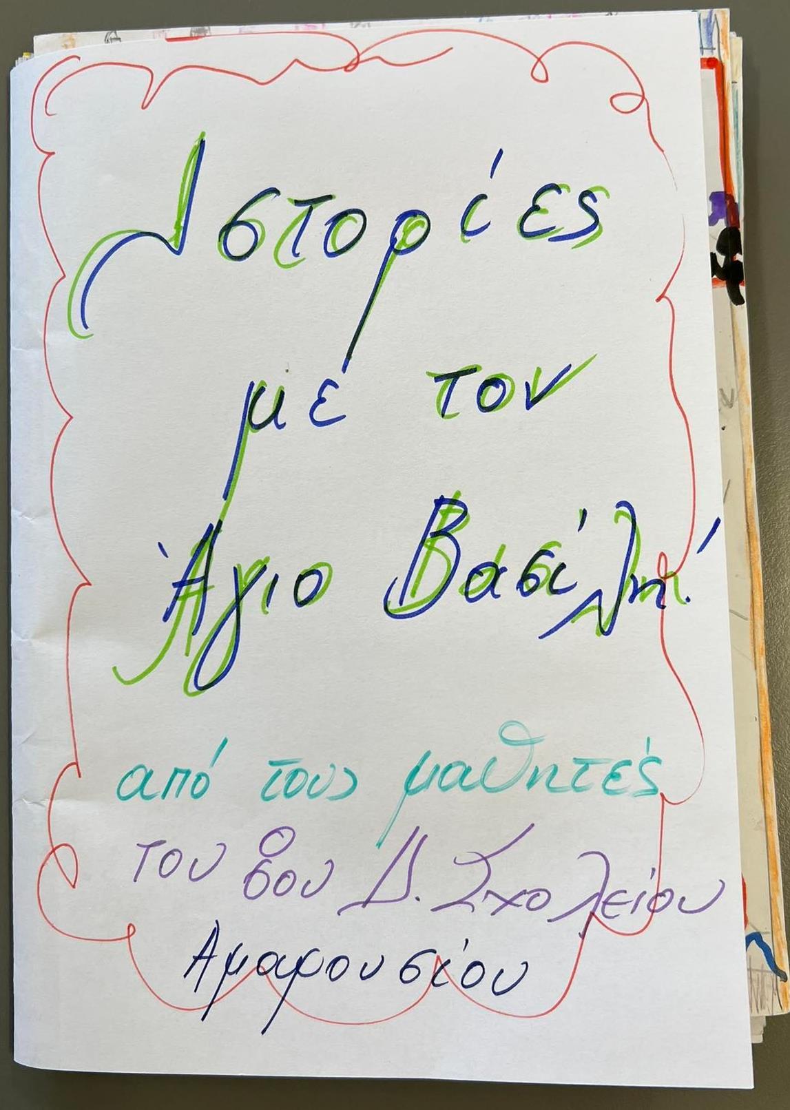 Η κάρτα έλεγε: «Αγαπητέ φίλε μου ήθελα να σου πω Χρόνια πολλά.» Ο Βασίλης συγκινήθηκε για τον φίλο του . Έτσι έζησαν αυτοί καλά και εμείς καλύτερα! Μαρίνα Κάππα Ε’ τάξη