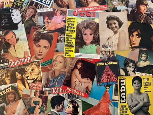 Period images, art film magazines, popular photostories, sensationalist or erotic magazines, reports on the latest outfits or on the more or less legitimate love affairs, help retrace the lives and careers of these divas. Starting with Sylva Koscina, who was born in Zagreb and worked in Italy with, among others, Sordi, Tognazzi and Manfredi, and at the tender age of 22 enchanted the Italians with her North European-like sinuosity. Her cat-like eyes captivated audiences already from her film debut alongside Totò.