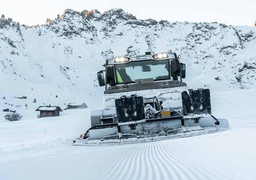 La velocità di esercizio di questi veicoli è pari a circa 15 chilometri all’ora. “Quando la neve è molto dura o durante la fresatura prima dell’avvio della stagione, procediamo anche a soli 5 km all’ora”, di chiara il caposquadra. La lentezza di marcia con sente, infatti, di garantire la massima precisione delle tracce. “Per guidare questi mezzi è necessa ria una grande sensibilità durante la sterzata, per ché se il volante non è in posizione corretta anche solo per un breve istante, le tracce possono risul tare lievemente ondulate e spiacevoli per gli scia tori”, rimarca Stefan. E la medesima sensibilità è indispensabile anche nella regolazione dei vari di spositivi e accessori del battipista: solo se questa preparazione viene svolta con precisione, sentieri »